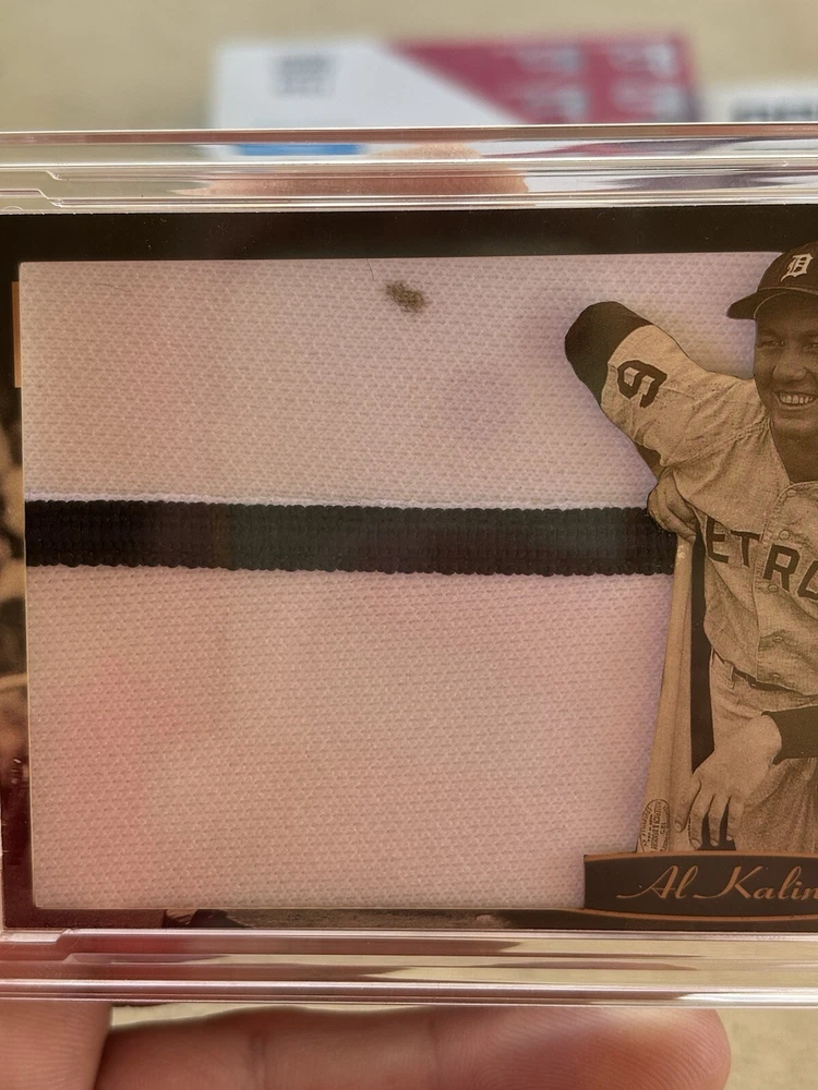 This Al Kaline Jersey Fusion Pro Fusion card with Game Worn Pants is a must-have for any Detroit Tigers fan. Featuring a 2011 Topps set and a card number of 10/25, this sports trading card is an excellent addition to your collection. The card is in excellent shape, with no noticeable flaws or defects. The card's highlight is the autographed game-worn pants, which adds a unique touch to the memorabilia. The card is parallel/variety, which makes it a rare find. This card is perfect for anyone looking to add a valuable and unique piece to their collection.
