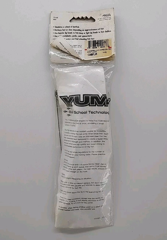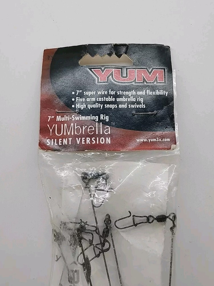 The YUM YUMbrella 7” 5-Wire Umbrella Rig is designed for bass fishing and features a positive buoyancy with a multicolor fish-shaped bait. This umbrella rig includes five assorted hook sizes and is made of a durable material for freshwater fishing. The model, YUMbrella Ultralight 5-Wire, weighs 25g (0.882 oz) and is suitable for catching Bass, Redfish, Pike, Muskie, and Striped Bass in freshwater environments.