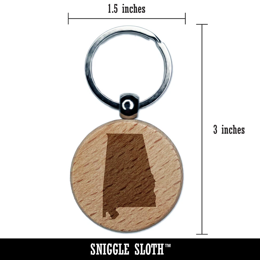 Alabama State Silhouette Engraved Wood Round Keychain Tag Charm
