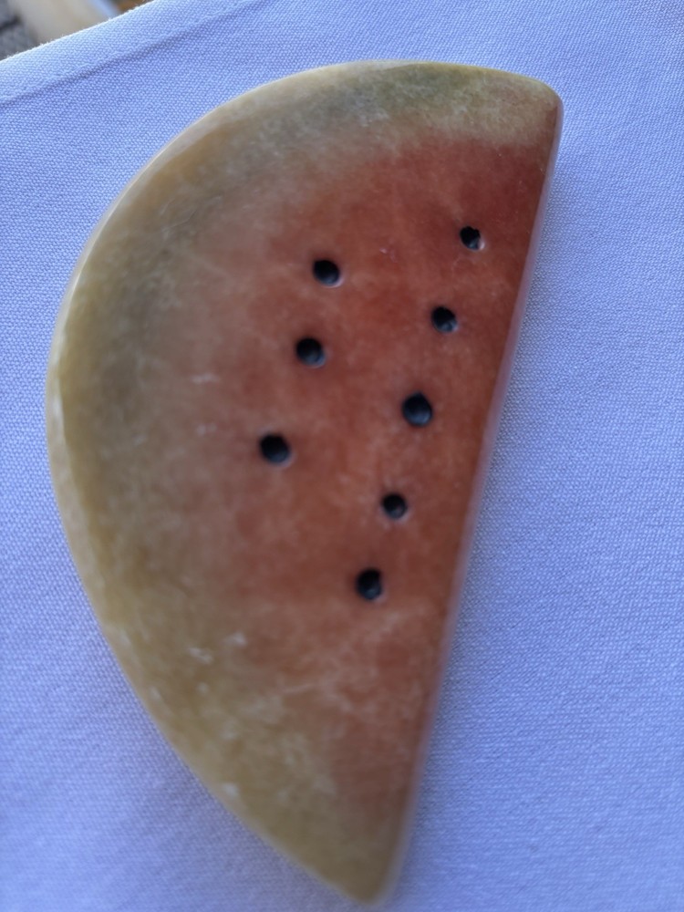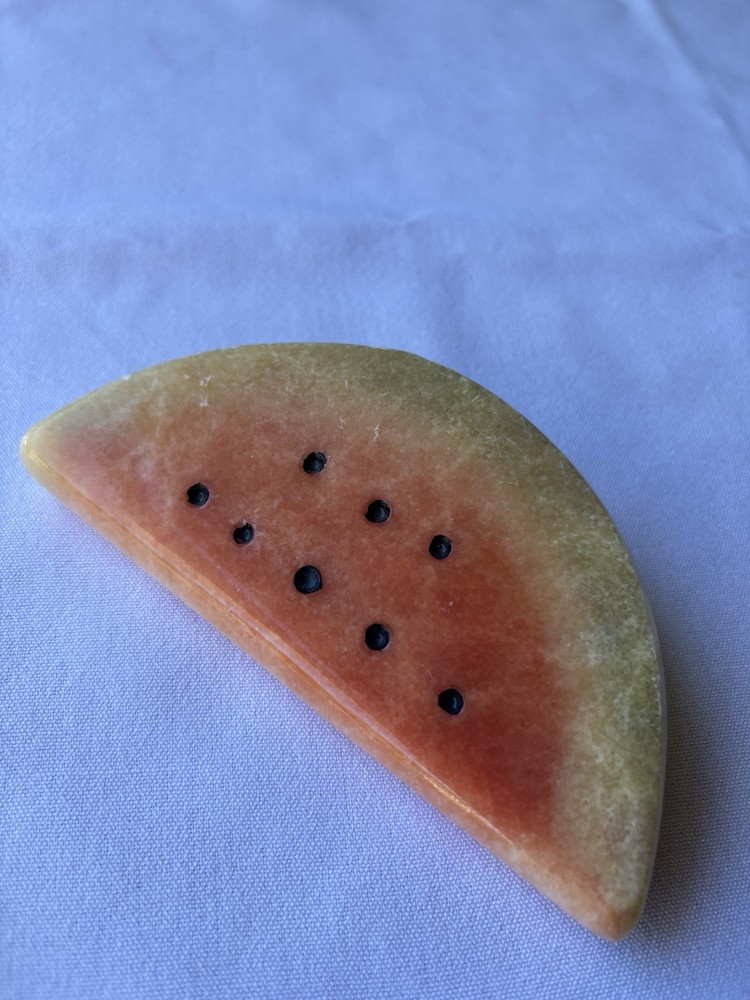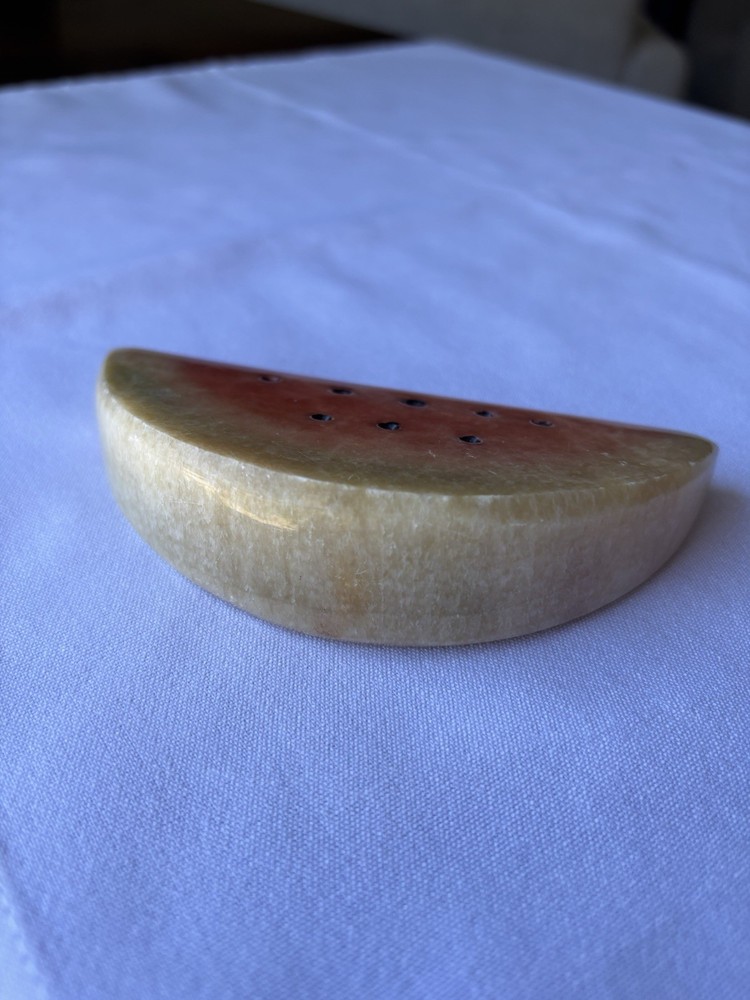 Alabaster Marble Stone Watermelon Fruit Slice Paperweight Vintage Carved Decor