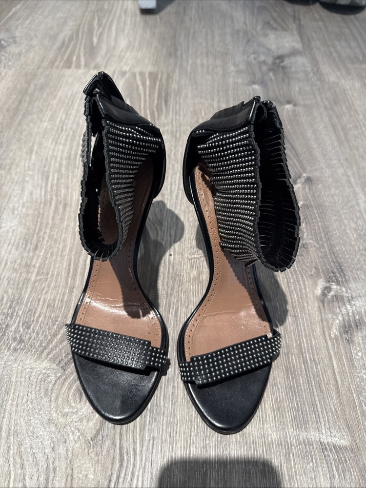 The Alaia Shoes Women's in size 35.5 feature a sleek black frame with a shield style design. Made by the renowned brand Alaia, these shoes are a stylish and chic addition to any woman's wardrobe. The black color adds a touch of elegance, making them versatile for both casual and formal occasions. With their unique shield style, these shoes are sure to make a statement and elevate any outfit.