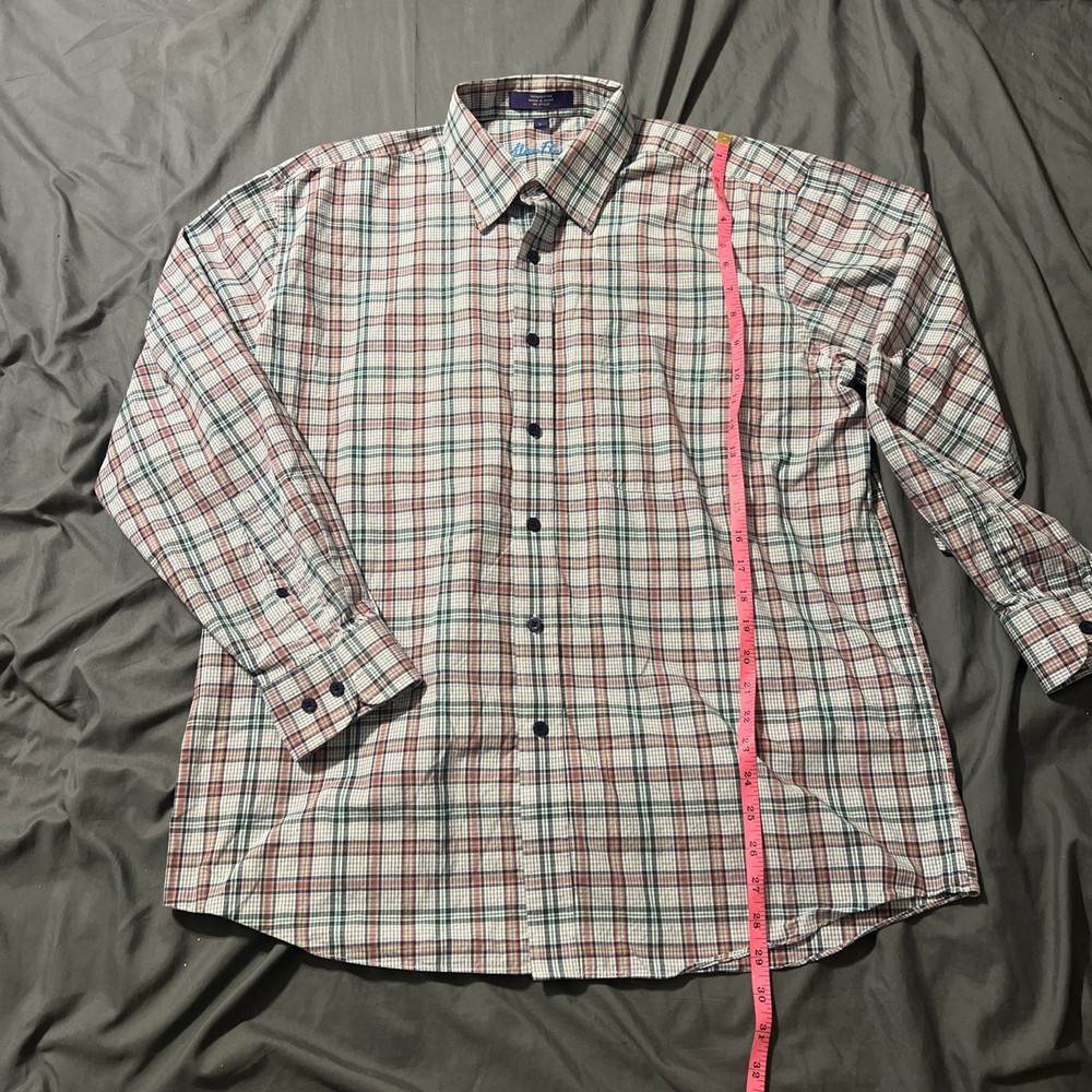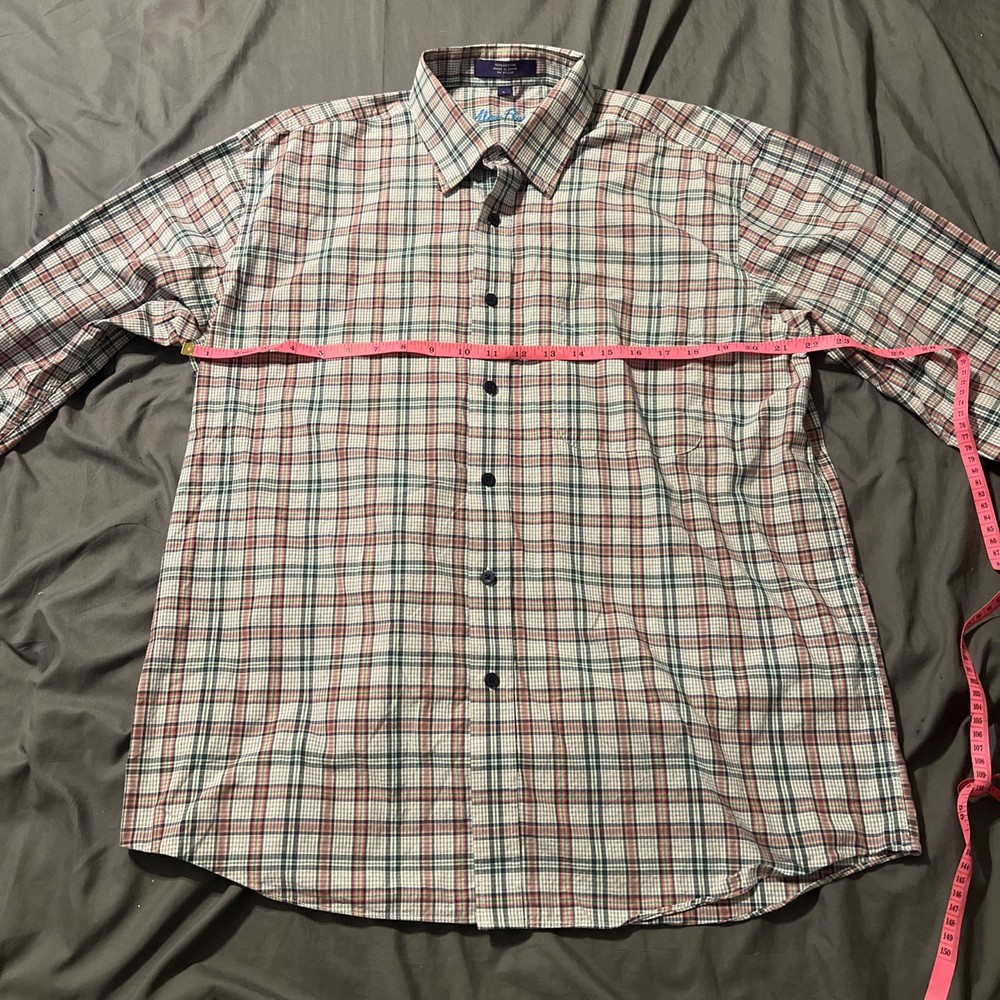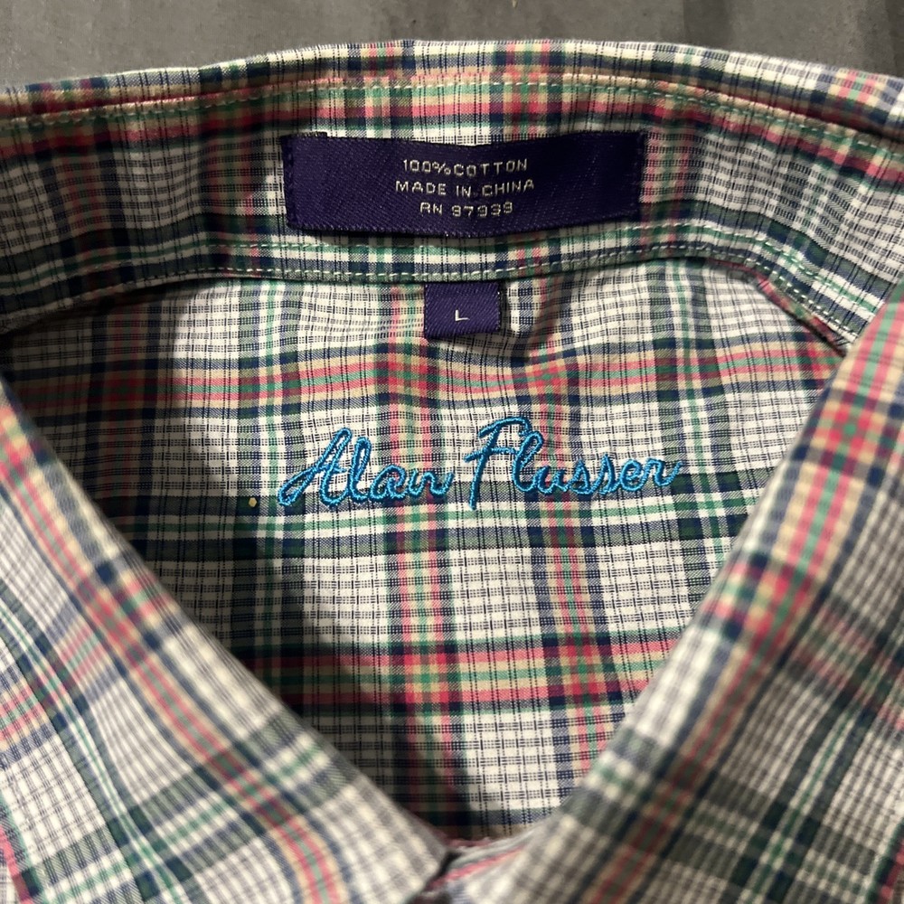 Color: Multicolor Closure: Button Brand: Alan Flusser Sleeve Length: Long Sleeve Neckline: Collared Fit: Regular Chest Size: 50 in Top Cuff Style: Barrel Cuff Country of Origin: China Shirt Length: 29.50 in Features: All Seasons, Pockets Theme: American, Colorful, Preppy Neck Size: 16 in Garment Care: Machine Washable Occasion: Business, Casual, Party/Cocktail Department: Men Collar Style: Button-Down Size Type: Regular Fabric Wash: Medium Pattern: Plaid Material: 100% Cotton Size: L Type: Dress Shirt