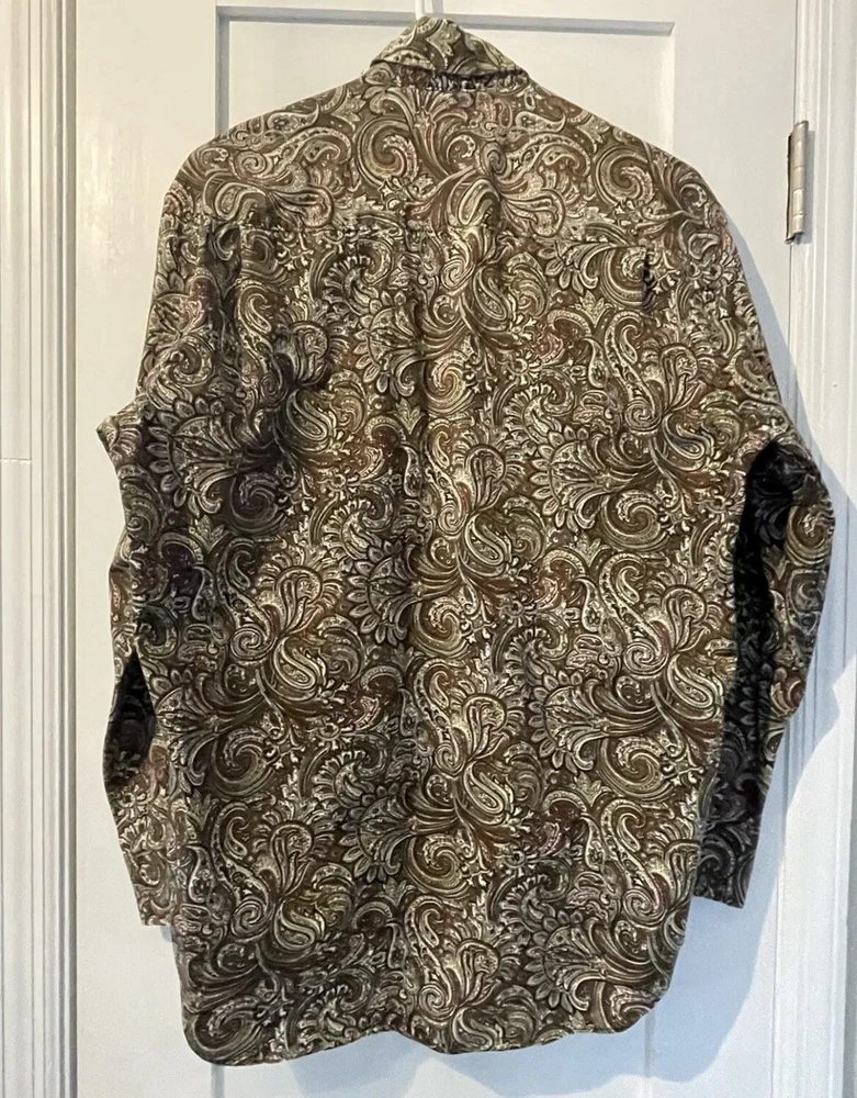 Alan Flusser Floral Button Up Long Sleeve Shirt Brown Tan Men’s Size: Small EUC! No Warranty or Returns. Only ship to 50 states, Virgin Islands, Guam & PR. Please pay purchase within 3 days. Feedback is highly appreciated, but please contact us before giving bad feedback. Our goal is for customer satisfaction!! Message us with any questions!! Thank you very much for looking!