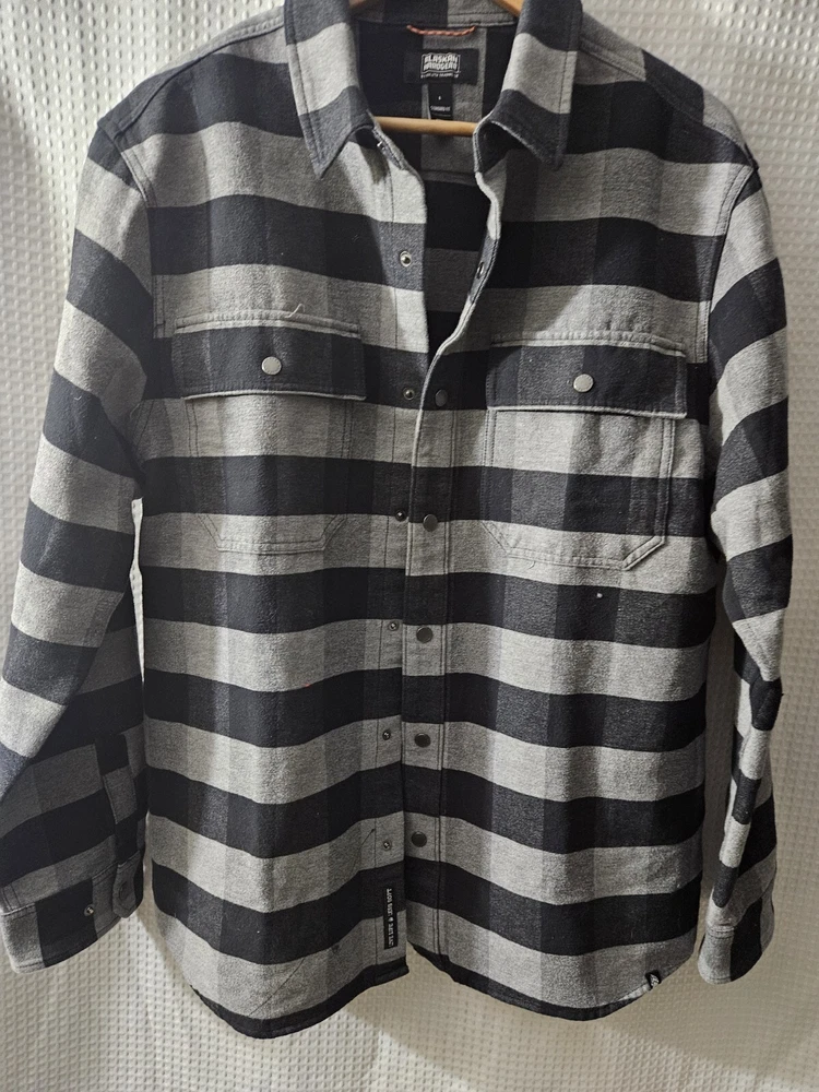 This Alaskan Hardgear men's crosshaul flannel overshirt features metal snap buttons and a multicolor design. The long-sleeved button-up shirt is perfect for big and tall men who want to add a touch of style to their wardrobe. The shirt is made of high-quality flannel fabric and features accents of buttons that give it a unique look. The closure of the shirt is snap buttons, which make it easy to wear and take off. This shirt is perfect for casual occasions, and the metal theme adds a touch of toughness to the outfit.