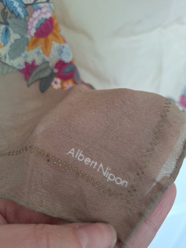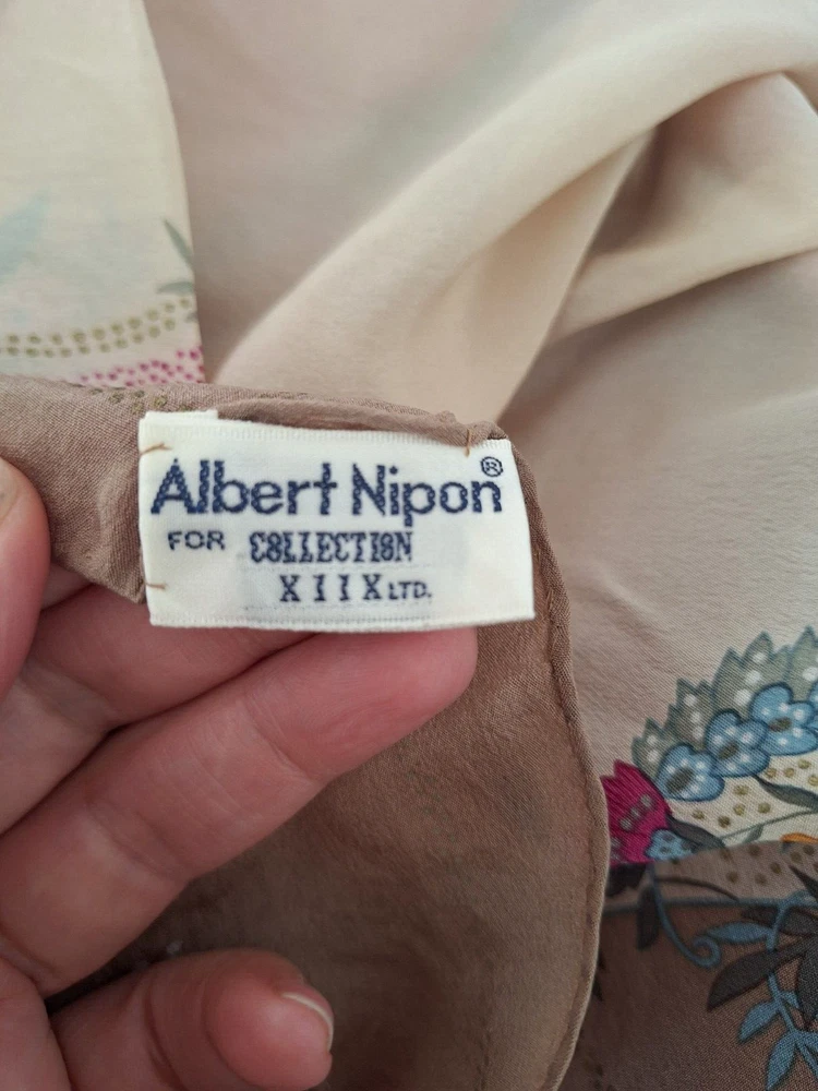 Albert Nipon for Collection XIIX Ltd Vintage 100% Silk Scarf Floral beige