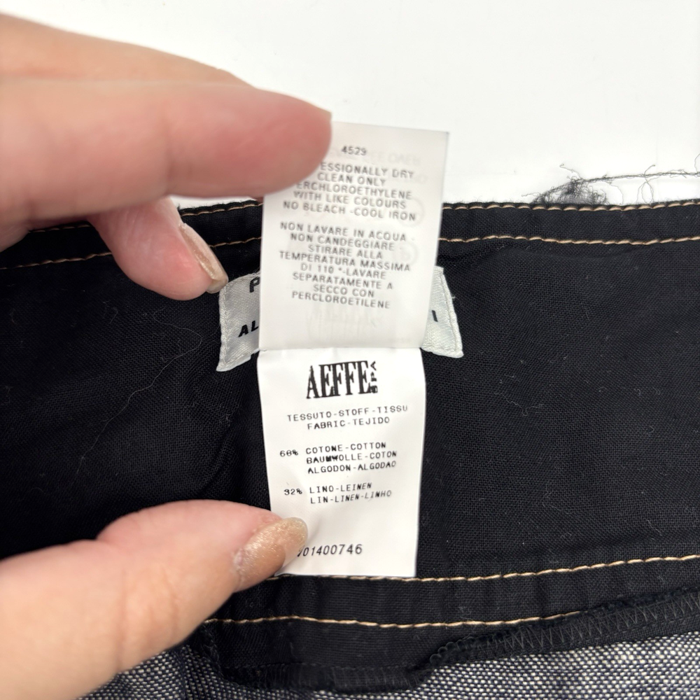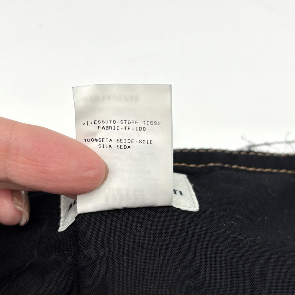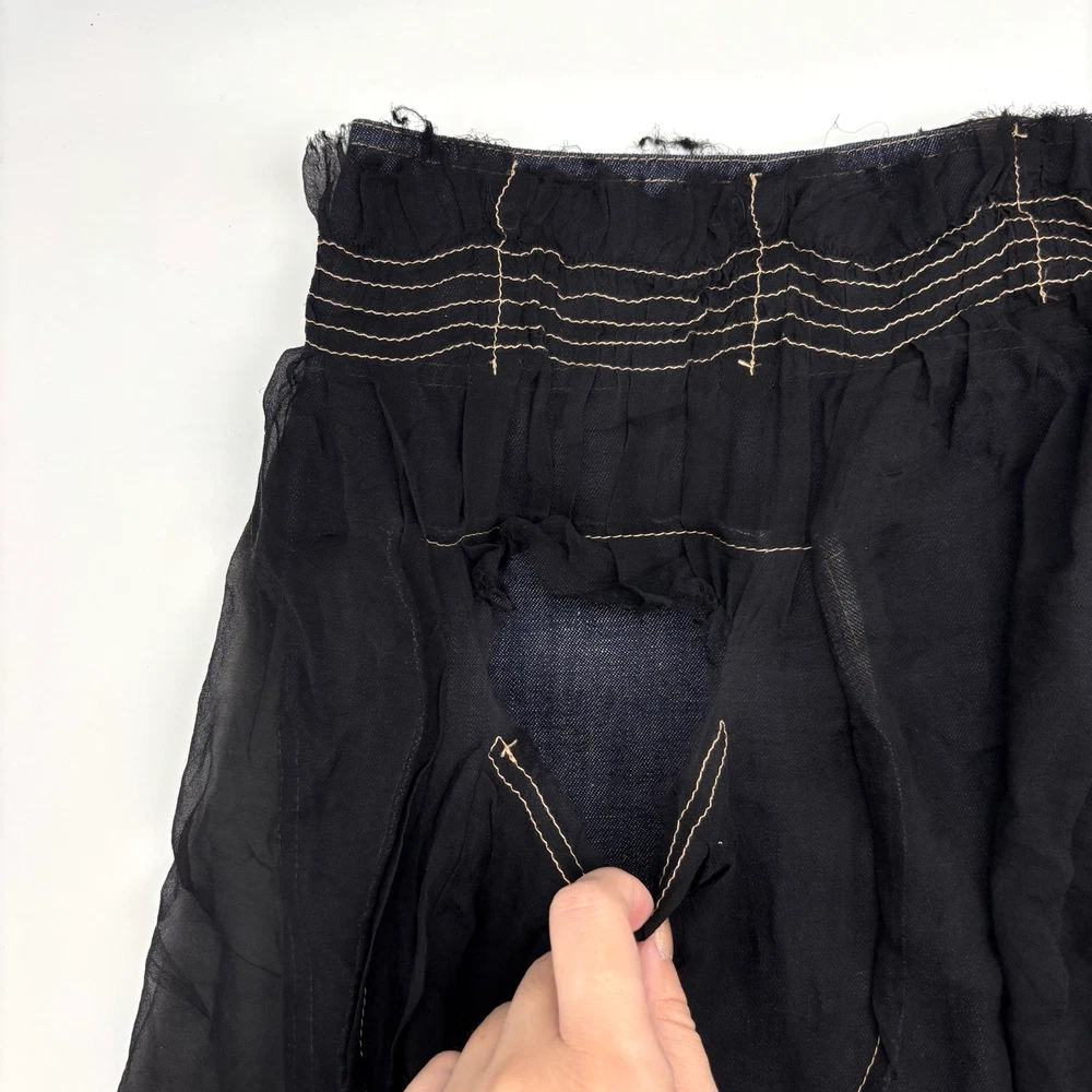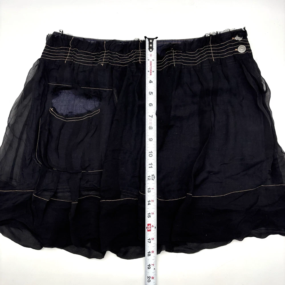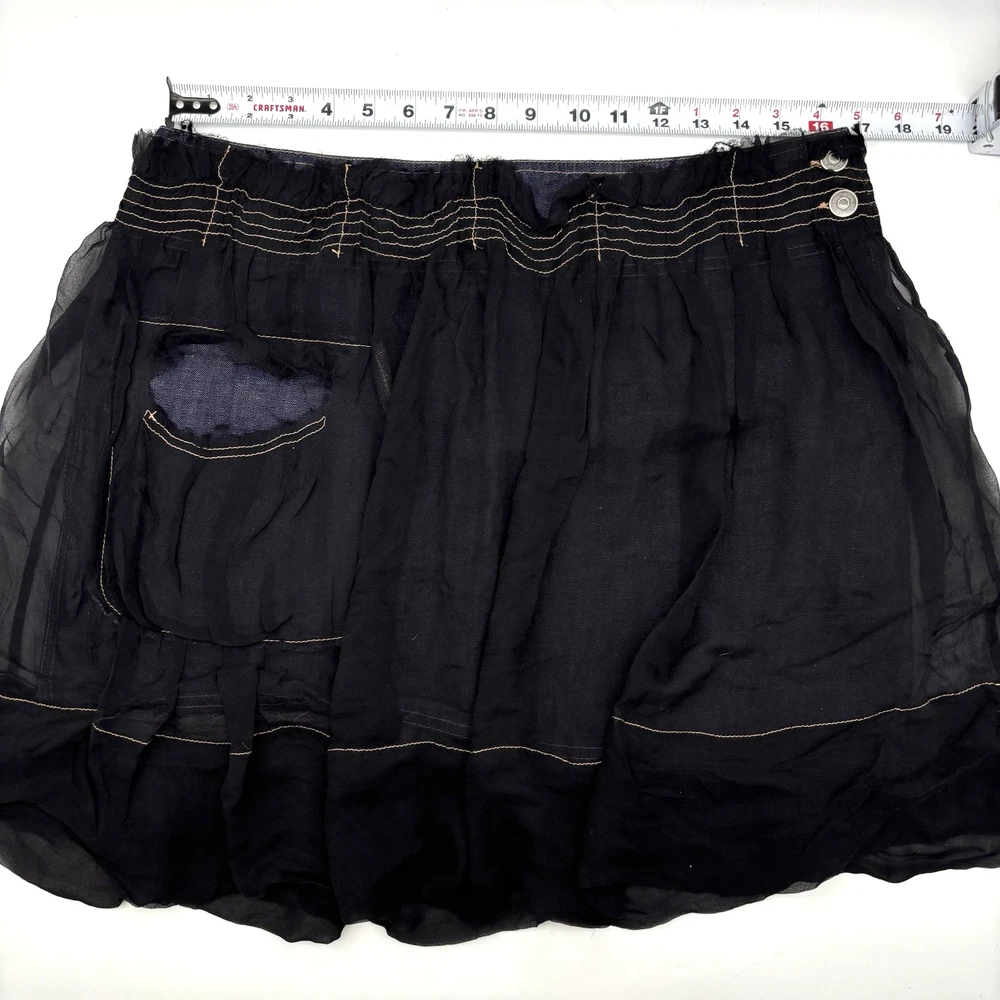 Philosophy di Alberta Ferretti Ruffle Mini Skirt Made in Italy Dark Wash 68% Cotton, 32% Linen Denim Body Black 100% Silk Overlay Above Knee Length Flat Front Ruffle Hem 1Pouch Pocket on Front Silk Overlay Zip and Double Button Closure on Left Hip Lightweight! No stretch! Professional Clean Only Women's Size: US 10 I 48 F 42 D 42 GB 14 Please refer to measurements below to ensure accurate fit before purchase! 16" waist (32" circumference) 20.5" hips 28" hem 18" full length from waist to hem Measurements made with garment laying flat. Excellent pre owned condition. Very gently owned. No rips, tears, stains, holes or other notable flaws. Clean and from a smoke free home.