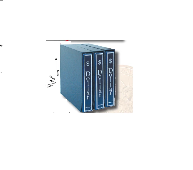 Coins & More HANDMADE PRODUCTS AND ACCESSORIES FOR COLLECTIONS MADE IN ITALY presents .... DOLLAR PRESIDENTS Album for the specialized collection of 1 Dollar coins commemorative of the 39 American Presidents, in the 10 years of emissions programmed by the two mints of Denver and Philadelphia for a total of 78 coins. Dark blue binder with silver print, four mechanism rings complete with case. Coins & More HANDMADE PRODUCTS AND ACCESSORIES FOR COLLECTIONS MADE IN ITALY presents .... DOLLAR PRESIDENTS Album for the specialized collection of 1 Dollar coins commemorative of the 39 American Presidents, in the 10 years of emissions programmed by the two mints of Denver and Philadelphia for a total of 78 coins. Dark blue binder with silver print, four mechanism rings complete with case.