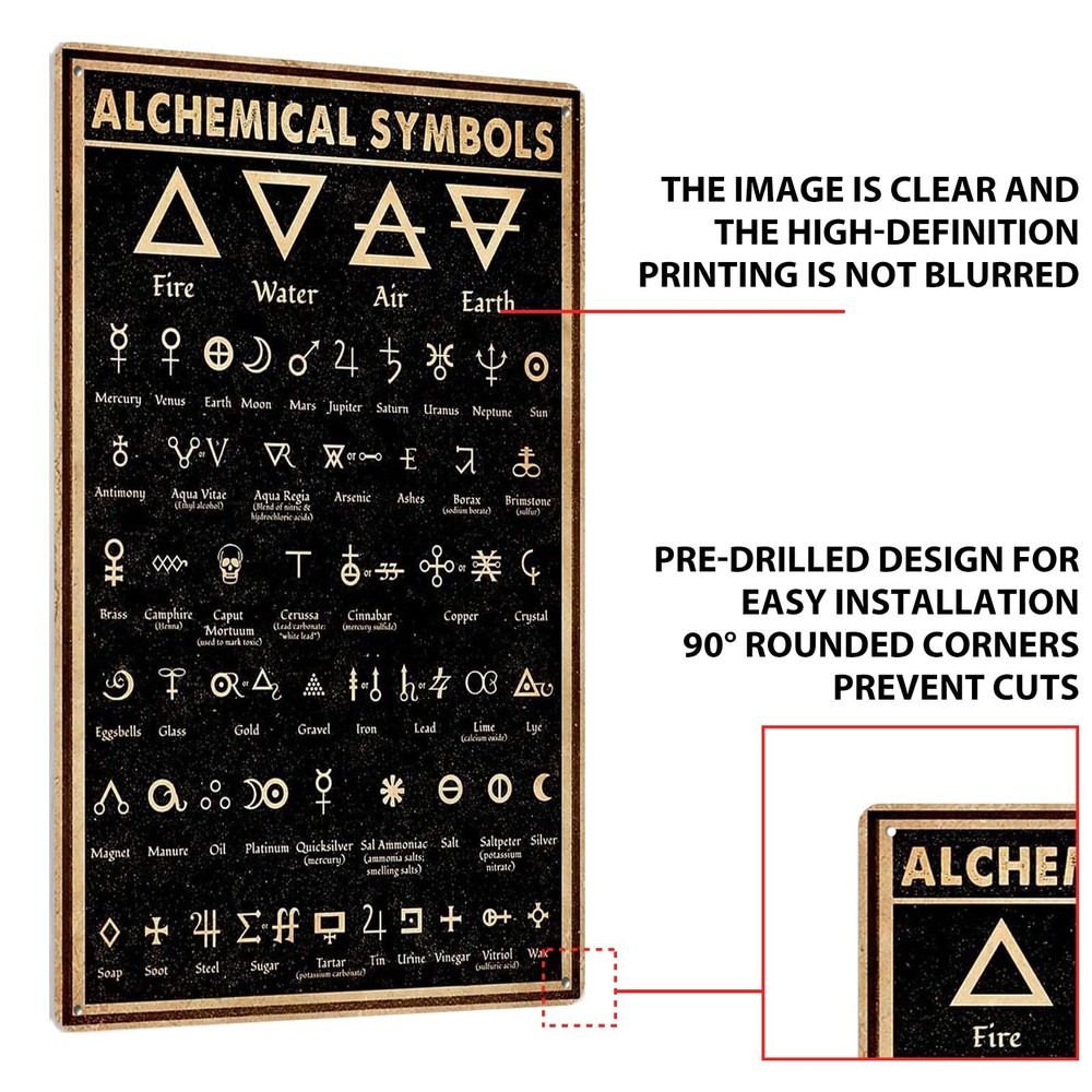 Love the unique vintage vibe this alchemy metal sign brings to my space! The sturdy tin material and rolled edges make it safe yet stylish—perfect for adding character to any room. The pre-drilled holes made hanging super easy, and the print has great detail. A cool, conversation-starting piece that elevates home decor effortlessly.