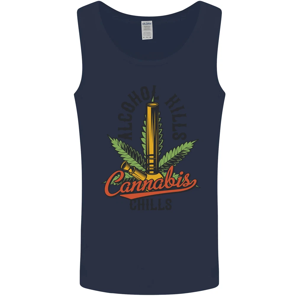 Alcohol Kills Cannabis Chills Weed Drugs Mens Vest Tank Top