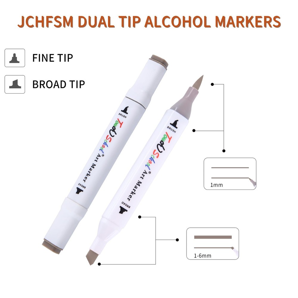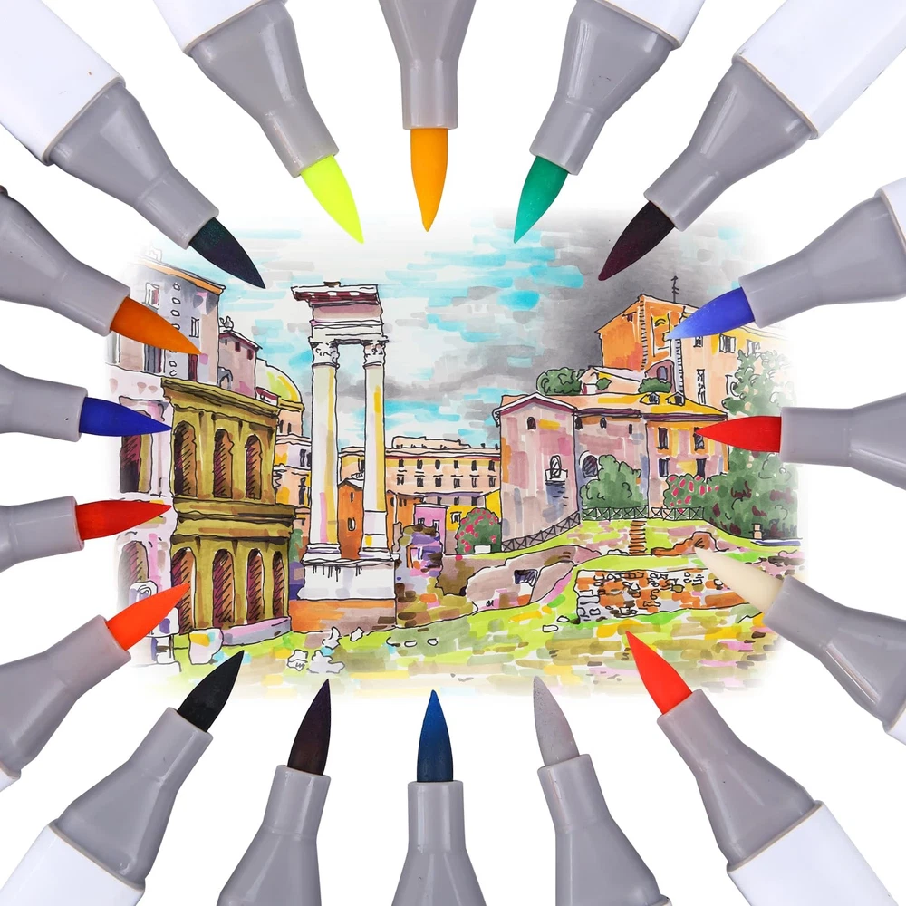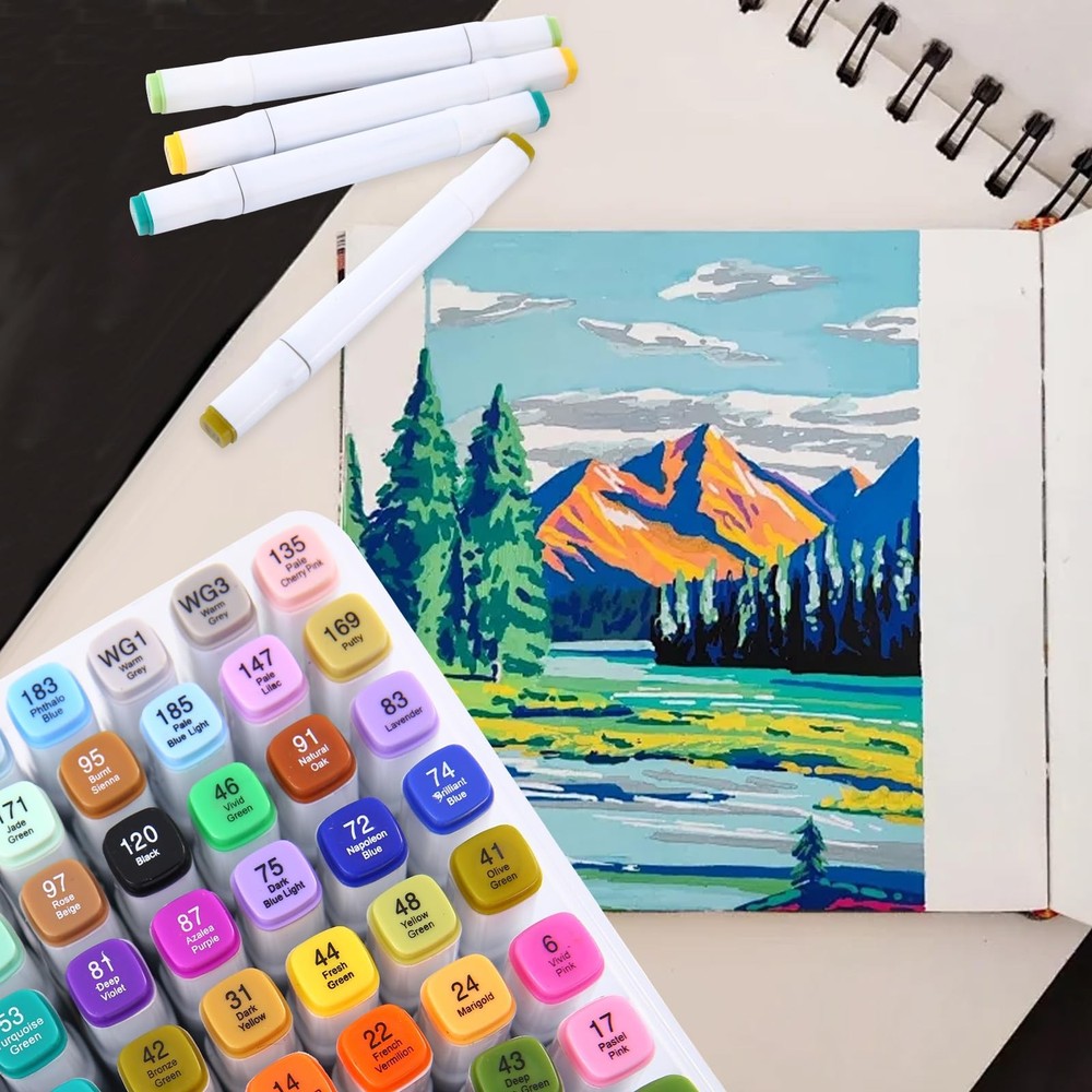 Drawing marker pens are essential for any artist's toolkit. This set of 12 vibrant markers allows for rich, bold coloring without the mess. With a wide variety of colors from crimson red to emerald green, you'll be inspired to bring your drawings and illustrations to life. The broad tips lay down color smoothly and allow for blending and shading. At the same time, the markers are precise enough for fine details. And with their alcohol-based ink that dries quickly, you can layer color without smearing. An affordable, portable set, these markers are perfect for coloring on the go or adding highlights to your work. 【HIGH-QUALITY MARKER SET】The product includes 80 high-quality alcohol markers in various colors. The ink is smooth and even, resistant to smudging and fading, and offers professional accuracy. It's easy to use and well-received by both adults and children. 【VIBRANT COLORS】With 80 unique colors, these alcohol markers bring your artwork to life. They are versatile, providing all the essential primary and secondary hues for artists in painting, sketching, illustration, design, comics, letters, posters, and animation. 【TWO PENS IN ONE】This dual-ended marker features two different tip sizes, allowing for versatile writing and drawing. 【CONVENIENT DESIGN】This marker is designed for comfortable grip during writing, with a colored cap for easy identification. The soft rectangular body features a roll-free design, ensuring stability during use while providing a great writing experience. 【CAUTIONS】This marker is non-toxic and acid-free, making it safe for children and students. To prevent ink leakage, avoid leaving the tip on paper for too long. After use, always cap it and store it horizontally to prevent drying and leakage.