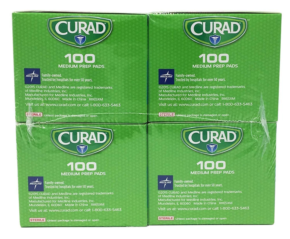 INDIVIDUALLY WRAPPED MEDICAL ALCOHOL PADS: Our CURAD Alcohol Prep Pads are individually sealed in easy-to-open foil-lined packets. This keeps them sterile and saturated until you need to use them. ISOPROPYL ALCOHOL WIPES: We use a formulation of 70% Isopropyl Alcohol for our 2-ply pads. Effectively clean your skin and wipe away dirt and oil without use of soap and water. CONVENIENT FIRST AID: Simplify your first aid routine with our cleansing swabs. You can use them to treat little cuts and scrapes or to prepare your skin for bandaging, finger pricks, or injections. Perfect to clean your skin before finger pricks or insulin shots. KEEP YOUR SMALL ITEMS CLEAN: Our sterile alcohol prep pads are great for cleaning little things around your home or office. You can use them to wipe down small items like your phone, glasses, or earphones. PRACTICAL ESSENTIAL ITEM: Our alcohol swab pads easily tuck away without taking up much space. We recommend keeping several with you in your bag, desk, or car to use when needed. Product Description Cuard Alcohol Prep Pads are thick to provide excellent cleansing action. Each alcohol swab is individually sealed for convenience and safety. Made with 70% isopropyl alcohol. 400 alcohol swabs. Manufacturer Contact Information 800-633-5463