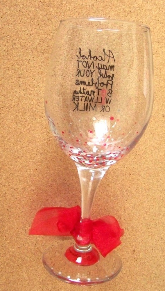 Alcohol may NOT solve YOUR Problems BUT neither WILL WATER OR MILK wine glass stem This gift stem wine glass measures about 9" tall and the opening is about 2.9" in diameter. Excellent condition, no cracks chips or major problems. A small piece of excess glass on top of the base. Some small light scratches, from wear, on the bottom. Don’t forget to click on my "Stores" link, next to my eBay name, to see other items I currently have listed for sale, or you can copy and paste this address into your browser: stores.ebay.com/highcountrycollectibles SHIPPING INFORMATION Shipping to U.S. addresses is FREE! International shipping - email me for cost, before the auction closes, if it is a concern regarding what final amount will be due. If shipping costs are stated, I will combine shipping costs , to save you money, where appropriate. PAYMENT INFORMATION For fastest service, use the PAYPAL link and you can pay immediately. To take advantage of combined shipping (if there are shipping charges), I will send you a combined invoice or you can send me an email requesting an invoice. SALES TAX INFORMATION COLORADO RESIDENTS ONLY (outside of Denver metro area) add 2.9% state sales tax , DENVER METRO residents add 4.1% sales tax. Thanks and good luck! HIGH COUNTRY COLLECTIBLES Since 1989 – A LEADER IN THE DENVER SPORTS MEMORABILIA MARKET. Check out my other auctions and listings, and keep an eye out for the different, unusual, and EXCLUSIVE items available nowhere else but from High Country Collectibles.