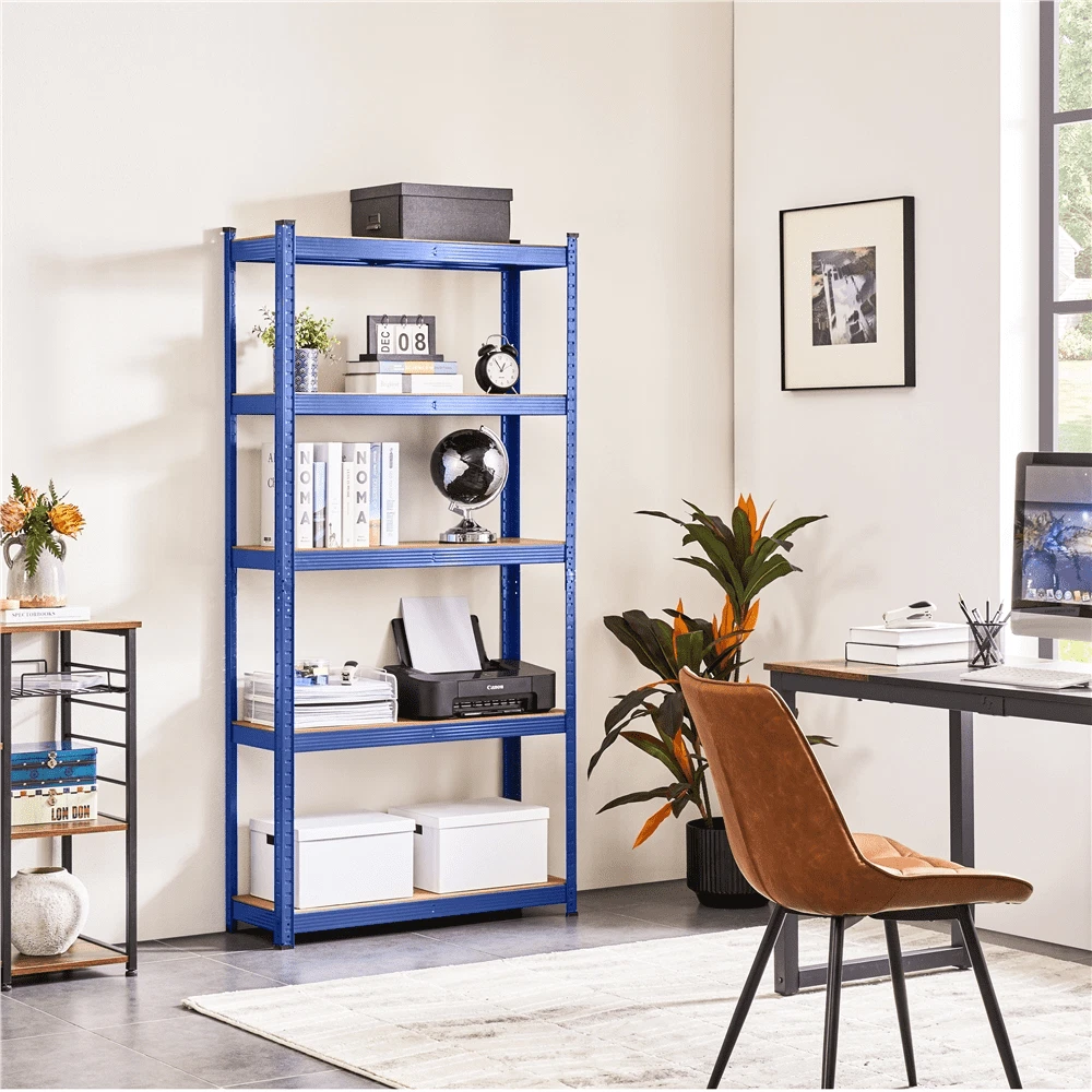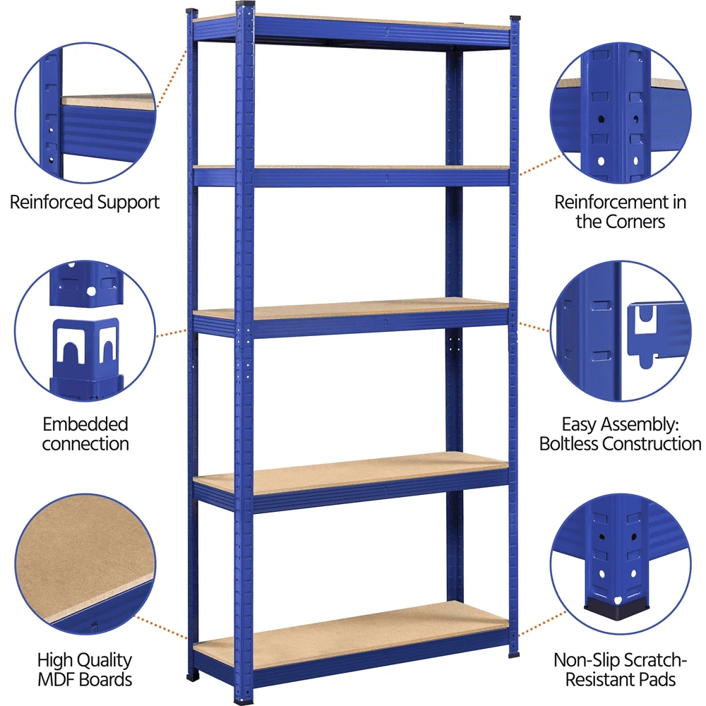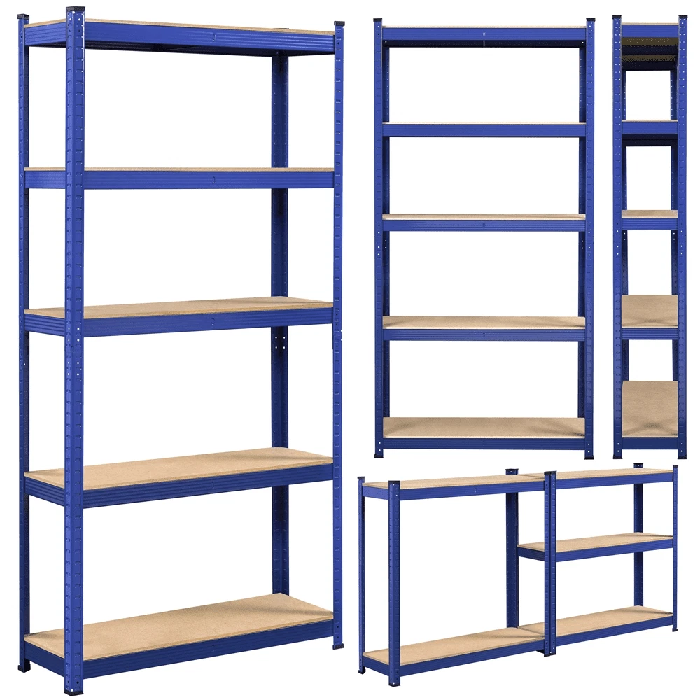 Are you looking for something to make your places neat and organized? This multiple tiers storage shelves are your ideal choices! The multiple shelves are made of sturdy steel and durable MDF boards. The storage shelves feature adjustable heights and dividable structures. You can change the structure according to your needs. Steel frame and durable boards will provide a long-term service life for you. The assembly is quite easy and no tools are required. You can use this set of storage shelves for storing books, flowerpots, luggage, goods, or anything you want to organize. Practical and durable, do not miss out! Smile Mart 5-Shelf Boltless & Adjustable Steel Storage Shelf Unit, Blue Color: Blue Material: Iron and MDF Boards Overall size: 35.5 x 12 x 71 inch (L x W x H) Max. Weight Capacity of Each Layer: 385.8 lb Note: 1. Please allow ± 0.5inch error due to manual measurement. 2. For safety, the product can not bear the maximum weight on each layer at the same time, especially the highest two layers. 3. To ensure stability, please do not place massive items on the upper layers. Please do not stand on the shelf. On Oct 25, 2024 at 03:28:19 PDT, seller added the following information: