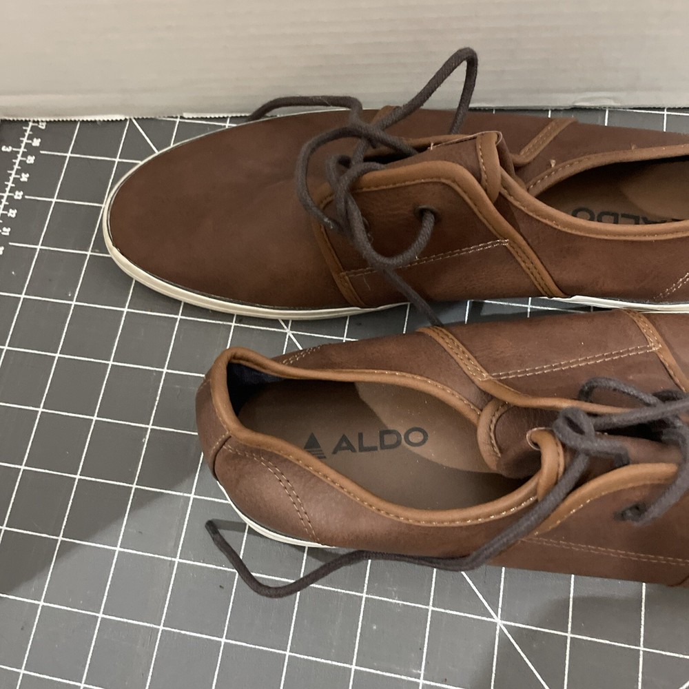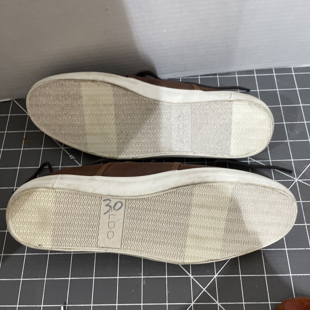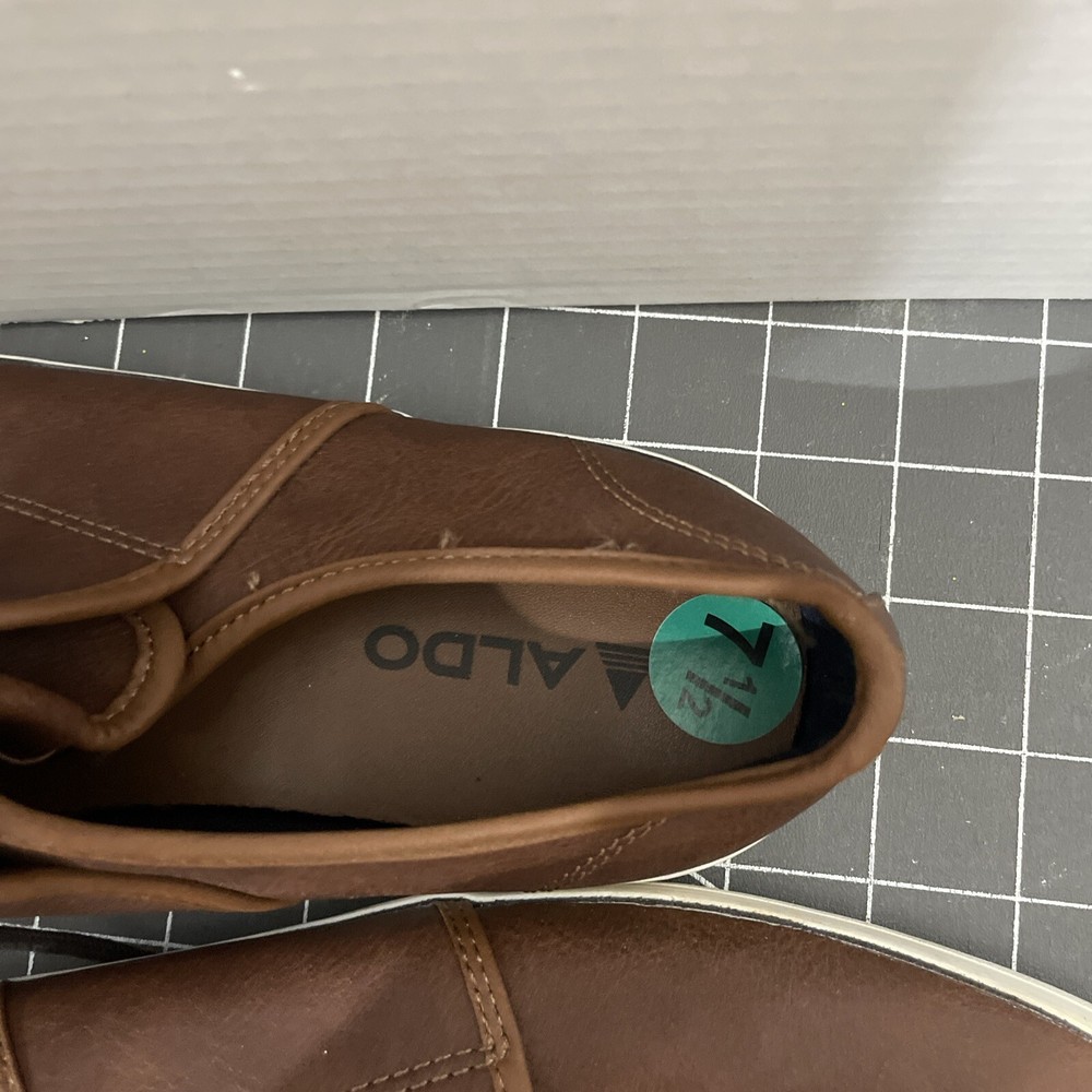 Elevate your casual style with these brown Aldo men's sneakers. Crafted with a solid pattern and made of high-quality leather, these sneakers feature a lace-up closure and a comfortable cushioned insole. The slip-resistant and lightweight design make them perfect for everyday wear, while the adjustable straps provide a custom fit. The sleek and versatile look of these sneakers is perfect for any casual occasion, whether it's a day out with friends or a casual workday. With their durable leather outsole and lining, these sneakers are built to last. Get your hands on these stylish and comfortable Aldo sneakers today!