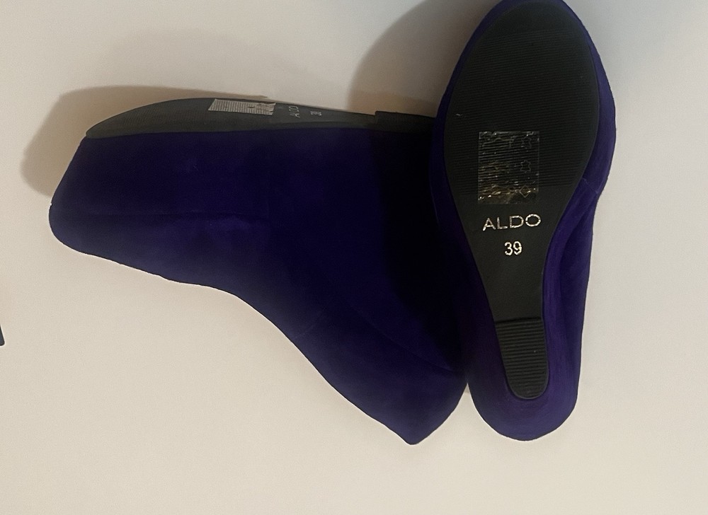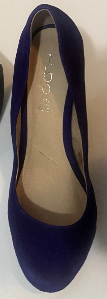 Heel Height: Ultra High (4 in & Higher) Upper Material: Faux Suede Pattern: Solid Style: Pump Heel Style: Wedge Department: Women Type: Heel Brand: Aldo Color: Purple Toe Shape: Closed Toe Closure: Pull On US Shoe Size: 8