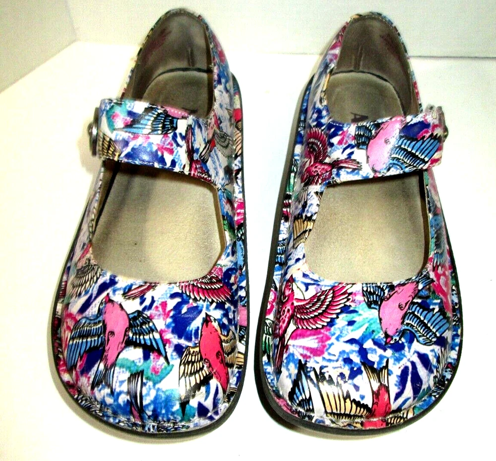 Step into a world of comfort and style with the Alegria Paloma PAL-219 Mary Jane shoes. These charming multicolor shoes feature a delightful bird pattern that brings a touch of nature-inspired beauty to any outfit. Crafted with a premium leather upper and a comfortable leather lining, they're designed for women who value both fashion and well-being. The size 37 shoes (US size 6.5-7) offer a secure fit with a practical strap/velcro closure and are finished with a modest 1.5-inch heel for a slight lift. The durable manmade outsole ensures long-lasting wear. Whether you're heading to the office or enjoying a casual day out, these Alegria Paloma shoes are a versatile addition to your footwear collection.