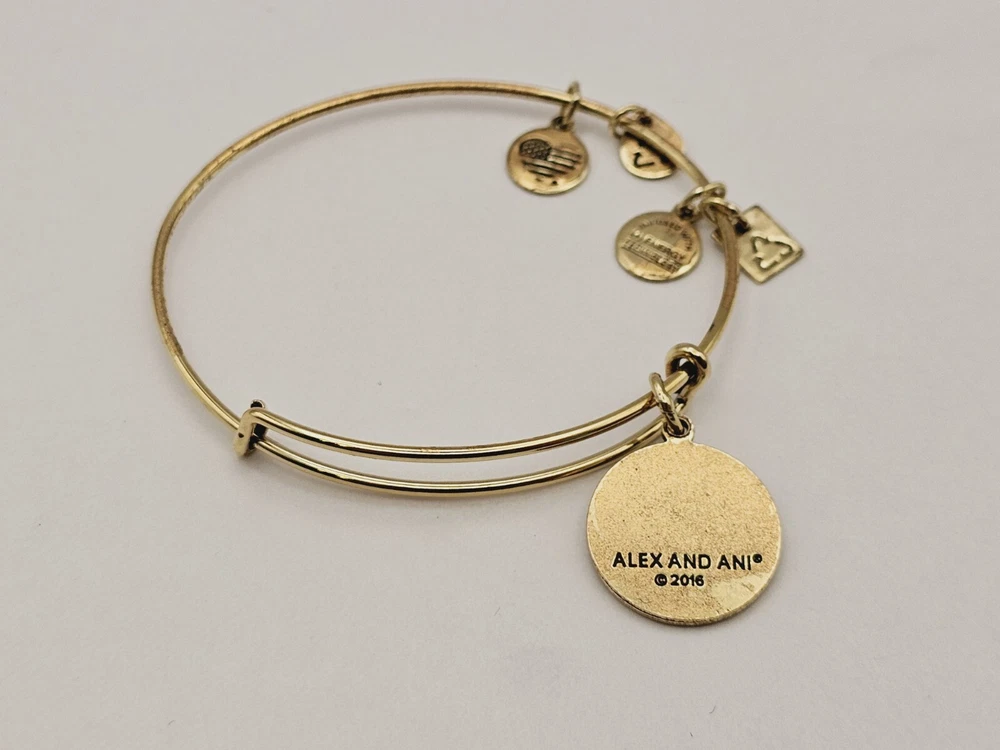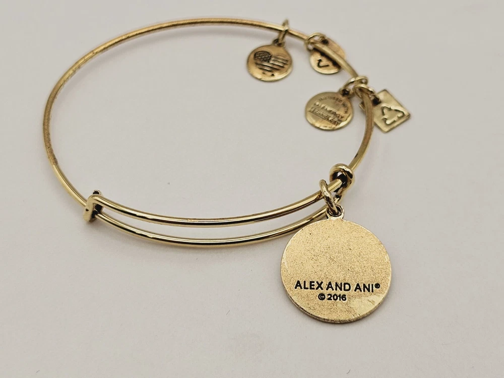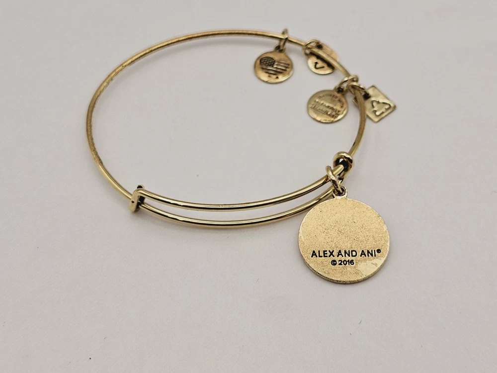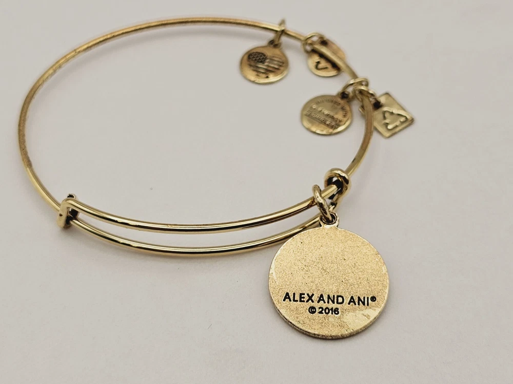 Alex and Ani Charm Bangle Bracelet Gold in color ✨️🌞 Condition is Pre-owned This one is in good condition . Take a look at the pictures for more details. Comes as shown in the photos. Will ship item via USPS Standard Ground Advantage mailing in a padded shipping envelope. I reserve the right to cancel any sale or bid due to late payment . If you need more pictures or info feel free to send me a email. We also offer combined shipping to help reduce shipping costs for multiple pieces . Usually 5 pieces on average in one shipping package is around 5 dollars for all to ship to your home or business. Thanks for looking ✨️☺️😀