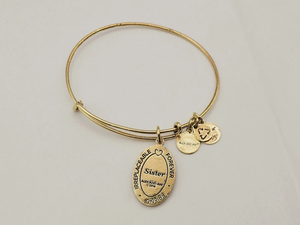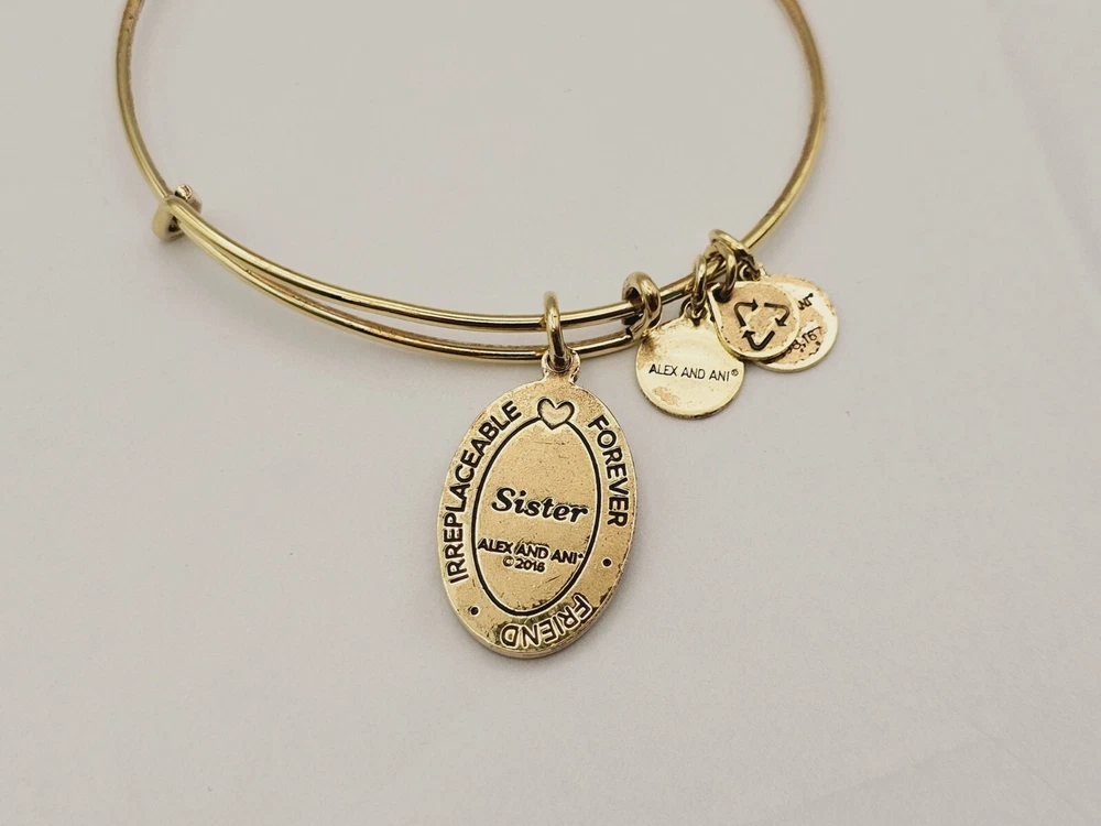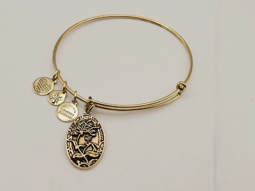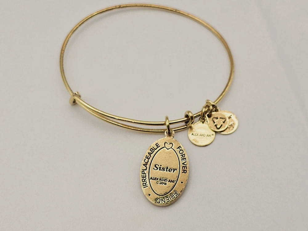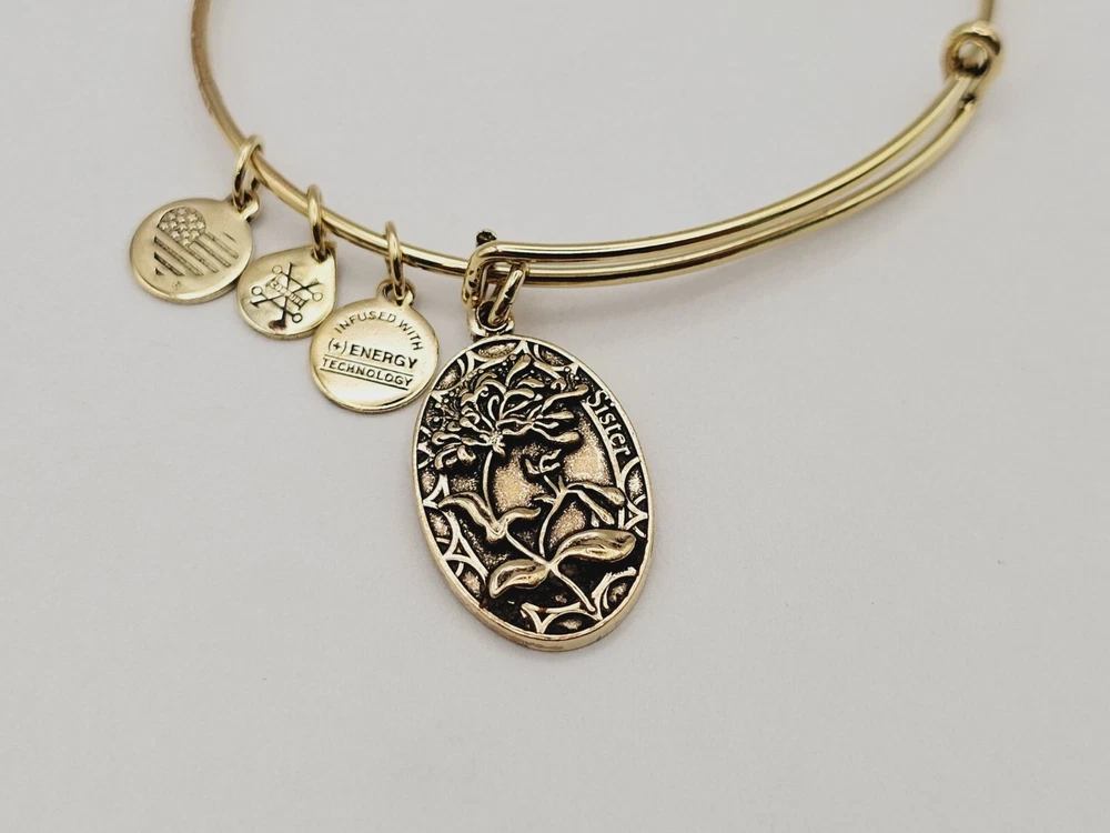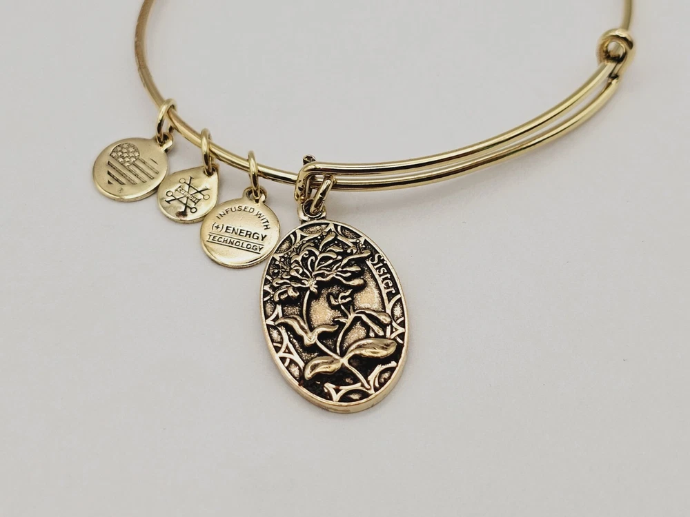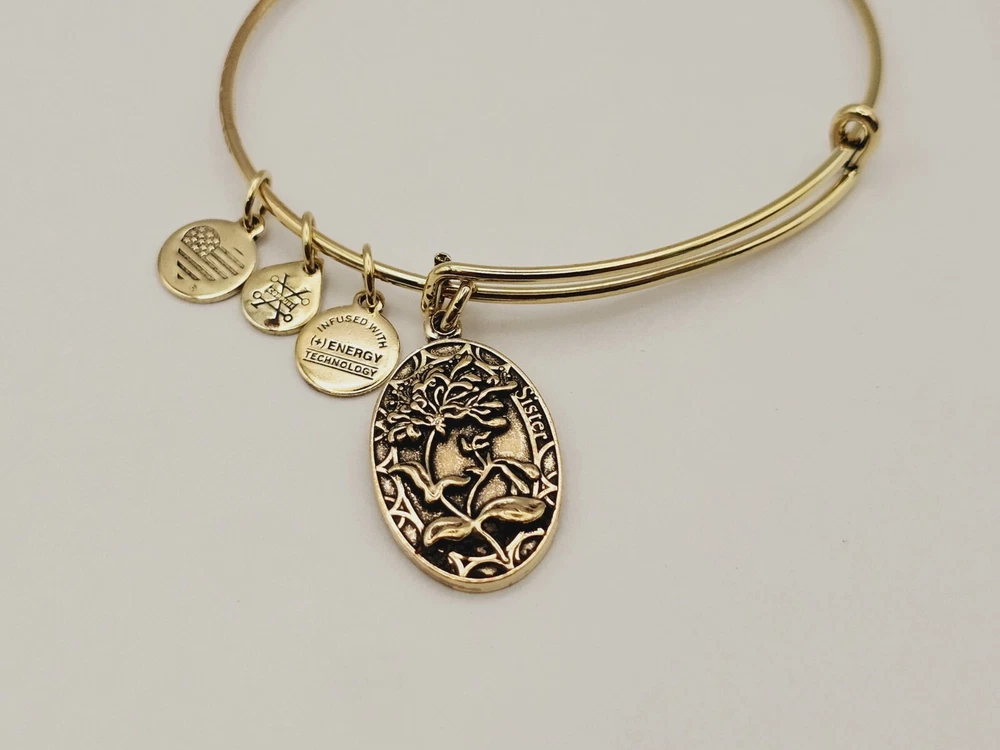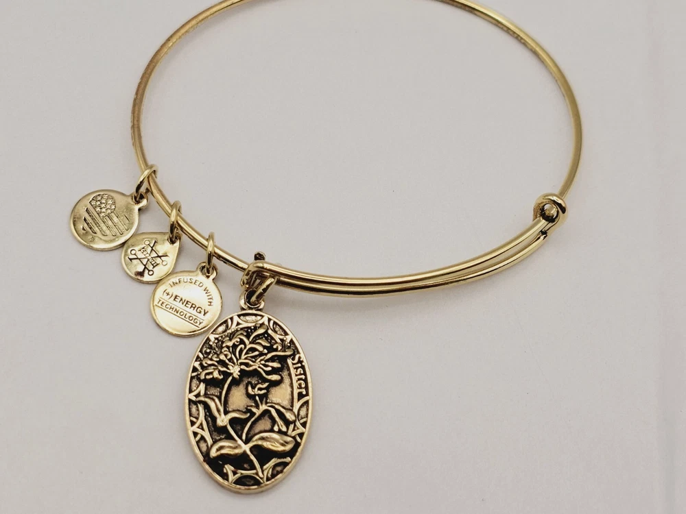 Alex & Ani Gold " Sister Floral Family " πŸ˜€ Charm Bangle Bracelet ✨️