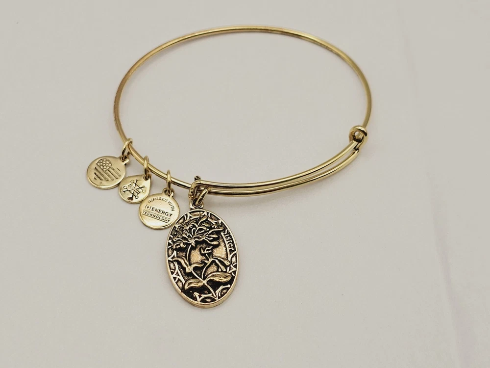 Alex and Ani Charm Bangle Bracelet Gold in color ✨️🌞 Condition is Pre-owned This one is in good condition . Take a look at the pictures for more details. Comes as shown in the photos. Will ship item via USPS Standard Ground Advantage mailing in a padded shipping envelope. I reserve the right to cancel any sale or bid due to late payment . If you need more pictures or info feel free to send me a email. We also offer combined shipping to help reduce shipping costs for multiple pieces . Usually 5 pieces on average in one shipping package is around 5 dollars for all to ship to your home or business. Thanks for looking βœ¨οΈβ˜ΊοΈπŸ˜€