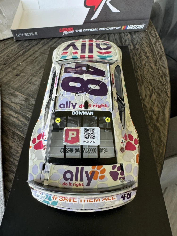Alex Bowman 2022 Autographed #48 Ally Best Friends Nascar Lionel 1/24 Diecast. this car is in excellent condition and is 1 of 516 cars made. Only removed from box to take photograph. Autographed car and has COA from Pristine Auctions.