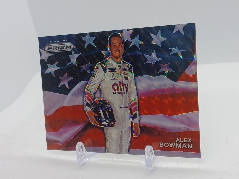 Player/Athlete: Alex Bowman League: NASCAR Team: Hendrick Motorsports Card Attributes: Holographic Foil Type: Sports Trading Card Year Manufactured: 2022 Card Name: USA UPC: Does not apply Product: Single Card Number: USA 2 Manufacturer: Panini Parallel/Variety: Prizm Set: 2022 Panini Prizm Original/Reprint: Original Sport: Auto Racing gtin13: Does not apply Features: Short Print, Insert Season: 2022