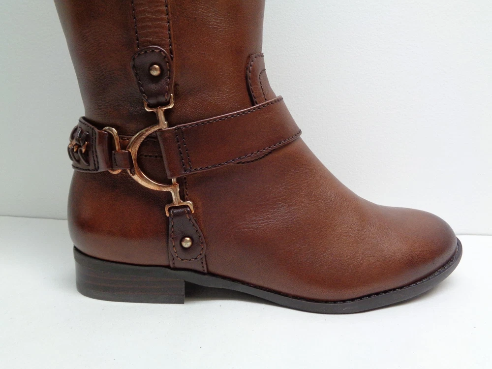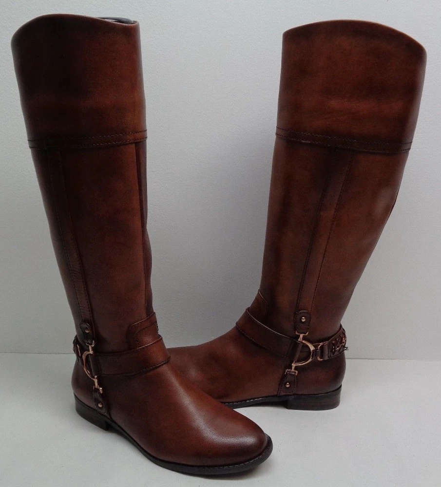 Alex Marie Size 5.5 M TAYLOUR Brown Leather Rider Boots New Womens Shoes -Style: TAYLOUR -Color: Brown -Leather upper -Fabric/ Man made lining -Man made outsole -Inner shaft zipper -Hardware is a gold color - Shaft height is approximately 15 inches -Heel height is approximately 1 inch -Top to bottom is approximately 16 inches -Boot opening is approximately 14 inches and flexible