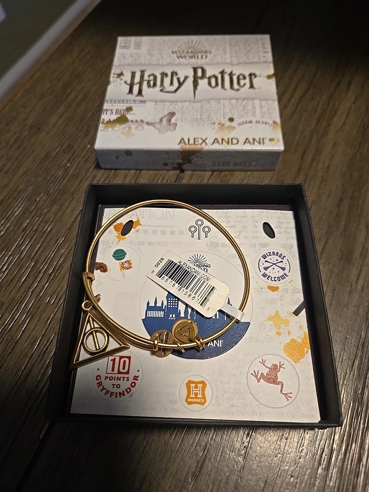 Brand: ALEX AND ANI Charm Type: Dangle Vintage: Yes Handmade: No Secondary Stone: No Stone Closure: Slide Metal: Mixed Metals Shape: Round Personalize: No Style: Bangle Setting Style: N/A Cut Grade: N/A Seller Warranty: No Signed: Yes Material: Metal Theme: Harry Potter Main Stone Treatment: N/A Main Stone Shape: N/A Wholesale: No Type: Bracelet Sizable: Yes gtin13: Does not apply Color: Gold Main Stone Color: N/A Main Stone: No Stone Country/Region of Manufacture: United States Main Stone Creation: N/A Number of Gemstones: N/A Occasion: any Country of Origin: United States UPC: Does not apply