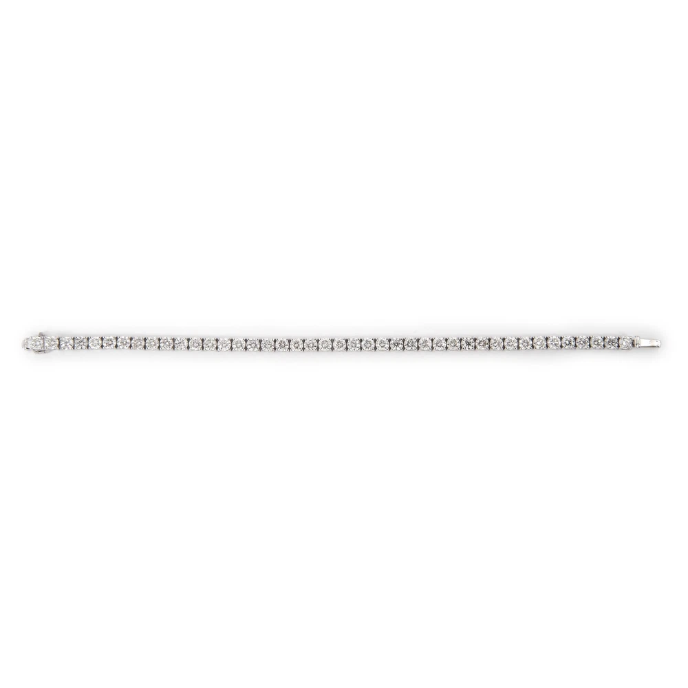 Exquisite and timeless diamonds tennis bracelet, by Alexander Beverly Hills. 42 round brilliant diamonds, 9.88 carats. Approximately G color and VS clarity. Four prong set in 18k white gold, 12.07 grams, 7 inches. Accommodated with an up-to-date digital appraisal by a GIA G.G. once purchased, upon request. Please contact us with any questions. Thank you. Item Number MD079
