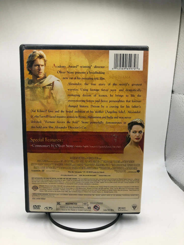 You are buying a USED copy of Alexander (DVD, 2005, Widescreen Special Edition Directors Cut). Please see all pictures for condition, ask questions before buying please. If you have any questions, please feel free to e-mail me and I will get back to you promptly. Payment must be received within 2 days after the end of the auction. I will ship the item out within 2 days of cleared payment. Shipped with USPS Media Mail *If shipping is less than estimated, difference will be refunded. Please see other auctions, as I will be adding more Movies. I will combine shipping for any lot purchased. All USED DVDs will have some minor scratches and blemishes on cases. This should be expected. Again, please see pics and ask questions. Be sure to favorite our store for updates!