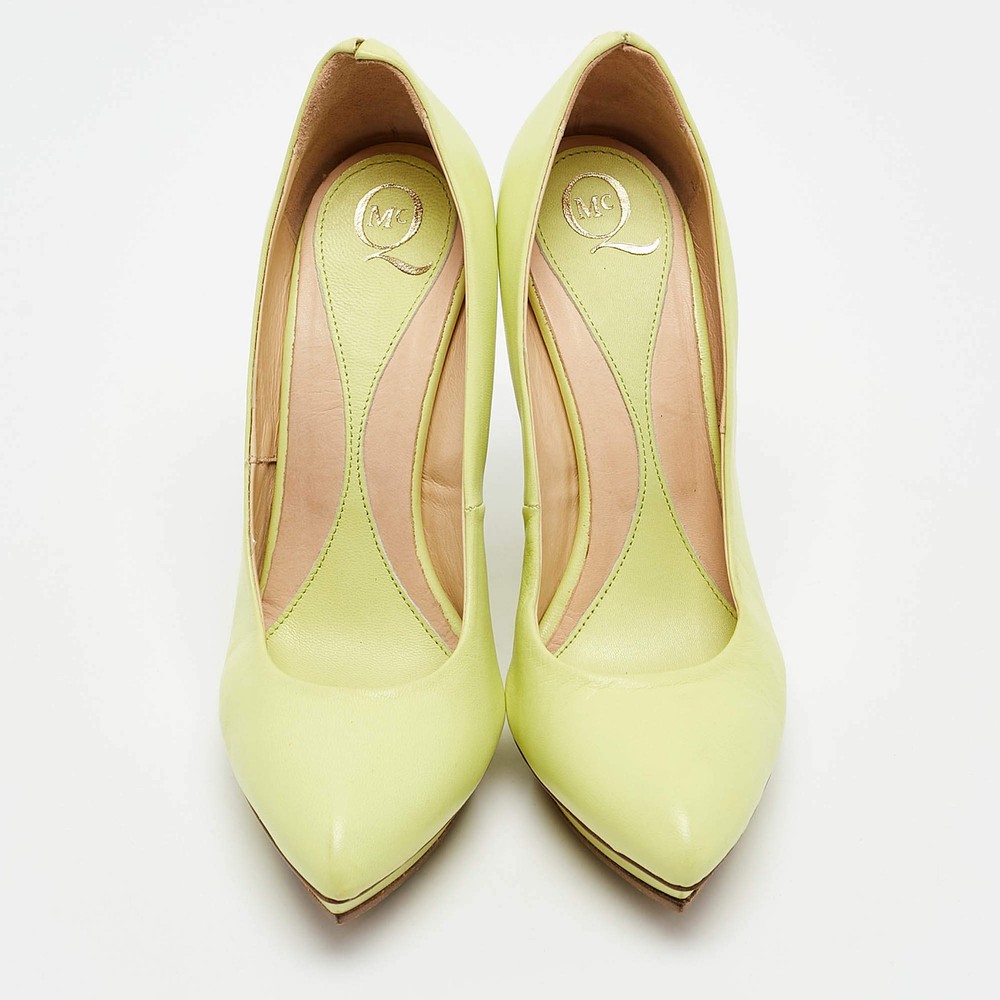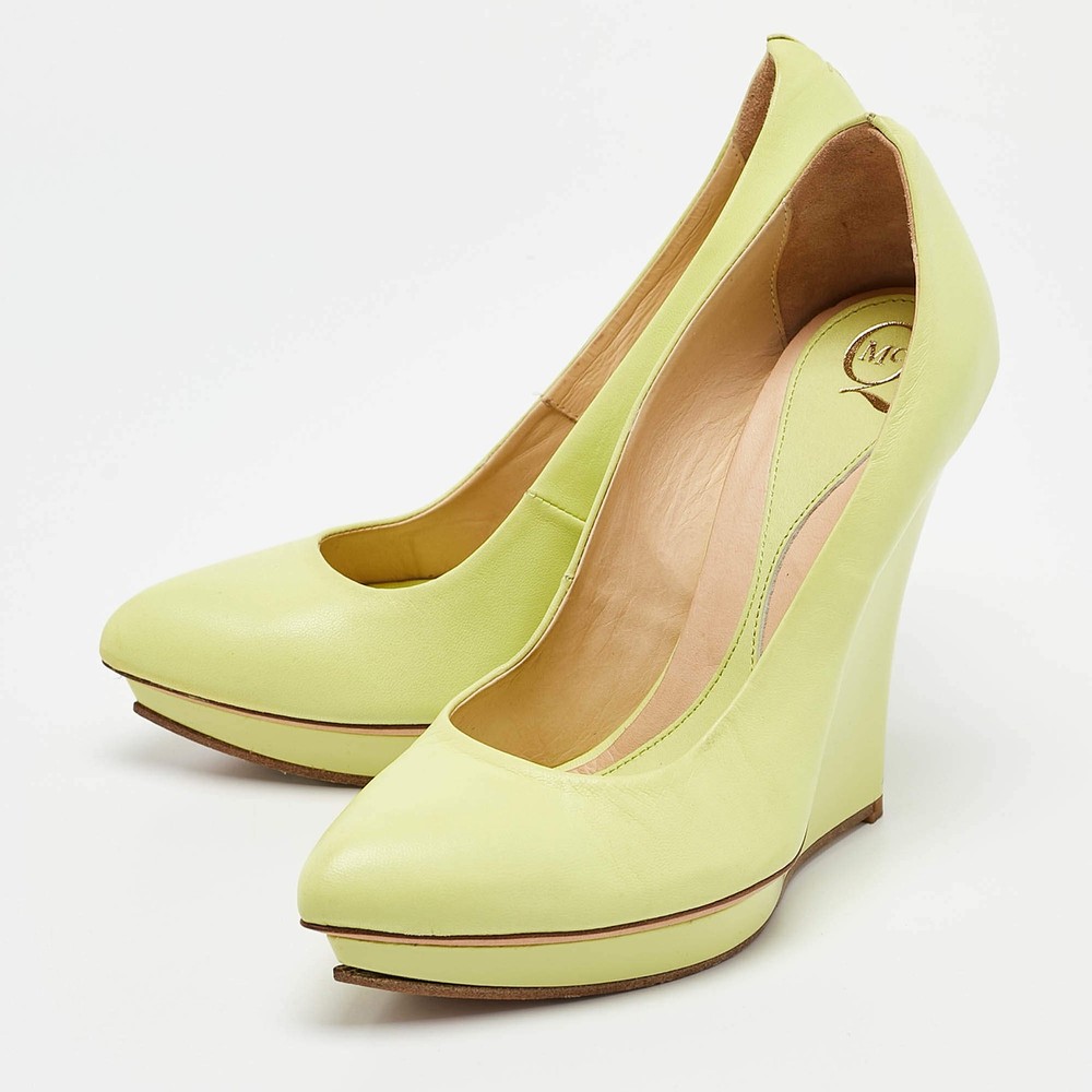 Our eBay Store About Us Contact Us Add to Favorite Sellers Alexander McQueen Neon Green Leather Wedge Pumps Size 37 Make a chic style statement with these designer pumps. They showcase sturdy heels and durable soles, perfect for your fashionable outings! Product Details Brand Alexander McQueen Color Green Includes Original Dustbag, Original Box Outsole Length 22 cm Outsole Width 6 cm Size 37 Certified by The Luxury Closet This item has gone through a detailed authentication process overseen by our experts. We offer a lifetime guarantee of authenticity on all our items. How We Check The in-house team of experts at The Luxury Closet is highly trained to verify the authenticity and the condition of the luxury products. They ensure that only 100% authentic items are put on sale.The evaluation process is unique with its own mix of assessment criteria and differs according to the category. Each item is evaluated based on the following combination of hallmarks, hardware, stitching, symmetry, material, craftsmanship, stamping, codes, hologram stickers, and packaging. Our authenticators also check if the items have been modified or amended (e.g., aftermarket diamonds, replaced batteries, repaired bags, etc.) International Buyers Import duties, taxes and charges are not included in the item price. These charges are the buyers responsibility. Please check with your country’s customs office to determine what these additional cost will be prior to buying.