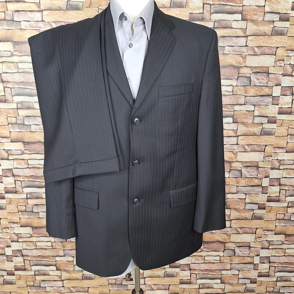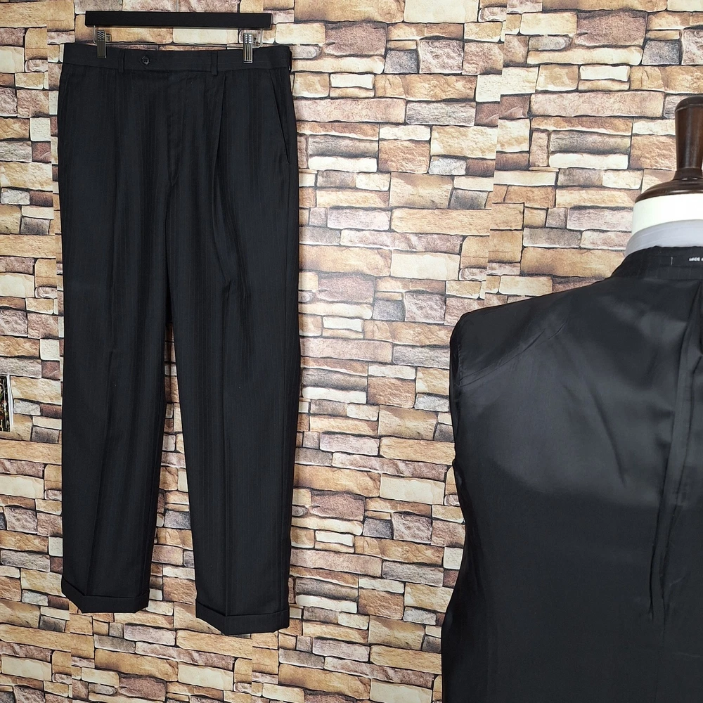 Alfani 2 Piece Suit Mens 40R 34X32 Black Stripe 3 Button Ventless Wool Canada Quality used condition. Please check out the measurements before buying to ensure a perfect fit. Shirt Size on Label 40R Shoulder- Hem 31.00'' Shoulder- Shoulder 19.00'' Shoulder- Wrist 25.00'' Armpit- Armpit 21.00'' Mid Button 21.00'' Everything ships within a day. Feel free to message me with any questions. Thank you very much. 12/16/24 Pants Pleated Cuffed Lined Quality used condition. Please check out the measurements before buying to ensure a perfect fit. Pants Size on Label Seam (Outer) 43.00'' Waist 34.00'' Waist- Crotch 12.00'' Inseam 32.00'' Extra inseam fabric 1.20'' Everything ships within a day. Feel free to message me with any questions. Thank you very much. 12/16/24