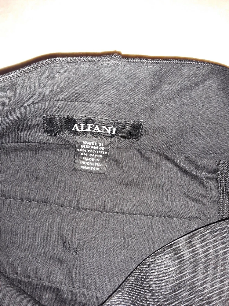 Alfani Black Striped Flat Front Dress Pants Sz 31X30 Waist : 31" Inseam: 30" Rise: 12" Leg Opening : 9" Zipper: yes Buttons: 1 : AT Combined Shipment: USA : Highest item shipping cost + $3.00. for each subsequent item.Or, you can purchase as many items as you choose and pay the flat rate of $ for your Priority Mail Large Flat Rate Box which covers your entire order. Please read the disclaimer below. INTERNATIONAL SHIPMENTS: Highest item shipping cost [+ Item Weight.] for each subsequent item. Please read the disclaimer below. DISCLAIMER on Shipping Costs: Our intention is to keep our shipping costs as low as possible. However, depending on the item purchased (weight) and the destination, shipping rates can vary; especially 30 Day?s No Questions Asked Returns Policy: Your satisfaction is very important to us. We have a 30 days NO QUESTIONS ASKED returns policy. The item must be returned in the condition in which it was purchased. If there are labels/tags they should not be removed. If they are, the item will be sent back to you. ANY SHIPPING COSTS WILL NOT BE REFUNDED. BOTH WAYS, receiving and any returns. Please contact us for the return shipping address and authorization. ALL COMMUNICATIONS MUST BE IN WRITING & TAKE PLACE THROUGH THE EBAY SITE ONLY. No private direct email correspondence. A customer care rep. will respond to you within 24 hrs (Mon-Fri). Once we have received the merchandise and inspected it, please allow 72 hours for a refund to be issued. NO See my other listings for more great items! We accept PAYPAL. Also we have a virtual terminal with PayPal through which we can accept Visa, MasterCard, Amex, and Discover. If you do not have a PayPal account, it takes virtually minutes to open International shipments: PLEASE DO NOT PAY until we determine your shipping costs. Most of our items also have an International Flat-Rate. Although, if due to the destination or the weight we are unable to honor the rate mentioned in the item?s listing, we will cancel your order and leave you positive feedback. Usually we use the US Postal Service. The best international rate for an international shipment is First Class (up to 4 lbs.)If your items exceed 4 lbs. we may pack them into two separate packages (and notify you of this).You still are eligible to take advantage of the combined shipping rates, even if we have packed them into two separate packages. The fees for packaging, shipping, insurance, Customs Duty Charges on international shipments are all the responsibility of the Buyer and are not included in the purchase price. If the item(s) are gifts, we could indicate ?GIFT? on the customs form so you would avoid paying more on duty.