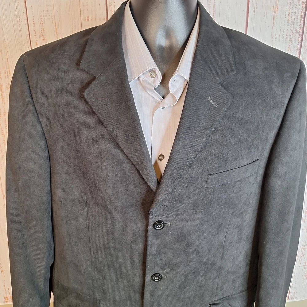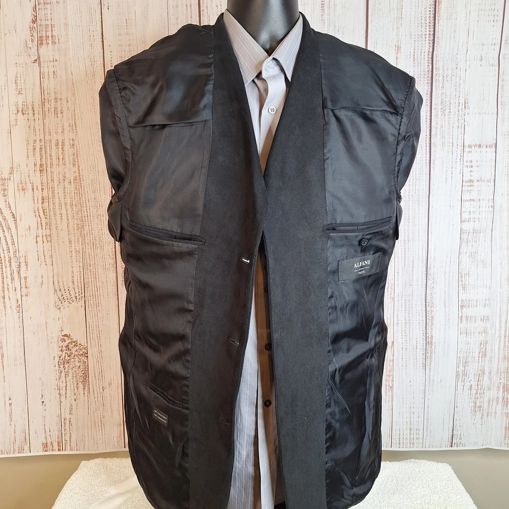 Alfani Jacket Blazer Mens 42R Charcoal Suede 3 Button Ventless Quality used condition. Please check out the measurements before buying to ensure a perfect fit. Shirt Size on Label 42R Shoulder- Hem 32.00'' Shoulder- Shoulder 19.00'' Shoulder- Wrist 24.50'' Armpit- Armpit 21.00'' Top button 21.00'' Everything ships within a day. Feel free to message me with any questions. Thank you very much. 6/18/24
