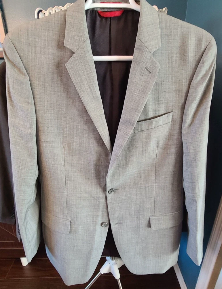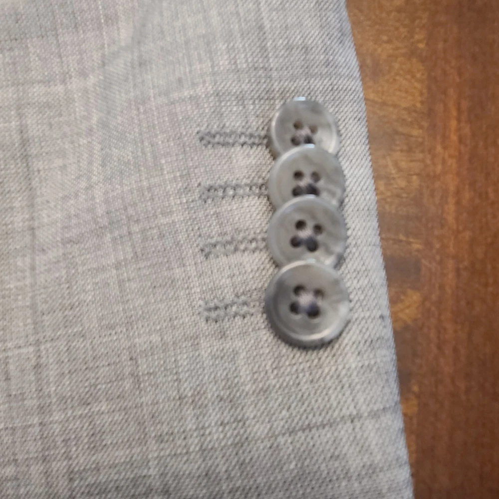 Product Overview: This Alfani blazer, exclusively made for Macy's, is a timeless piece crafted from 100% wool with a sophisticated light gray micro-check pattern. Perfect for business, formal occasions, or smart-casual wear, this jacket offers a versatile addition to any wardrobe. Despite a few minor stains on the back and shoulder, it remains a highly stylish and functional piece at an excellent value. Key Features: Brand: Alfani (Exclusively for Macy's) Style: Two-Button Suit Jacket Size: 42L Color: Light Gray with Black/Charcoal Lining Material: 100% Wool Pattern: Micro-Check Measurements (Approximate): Chest (Pit to Pit x2): 42 inches Waist: 38 inches Length: 33 inches Shoulder to Shoulder: 18.5 inches Sleeve Length: 27 inches Closure: Two-Button Front Vent Style: Single Vent Front Type: Flat Front Made in: China Lining: Black/Charcoal Silky Synthetic Blend (not wool) Why It's Desirable: Alfani's exclusive line for Macy's is known for its modern tailoring and timeless designs. The light gray micro-check pattern adds a touch of texture and style without being overpowering. Made from 100% wool, it offers warmth, durability, and a polished look that suits any occasion. The classic two-button front and single vent provide a flattering fit, making it a must-have for any fashion-forward individual. Package Includes: 1 Alfani Light Gray Micro-Check Wool Blazer (42L) Disclaimer: ⭐ Shop & Save: Check out my store for more great finds across all categories! Stock up on multiple items to save on shipping. ⭐ Items are shipped same or next business day once payment is received. ⭐ Please be sure to review photos and description for product information and flaws. Colors may vary slightly due to screen settings. ⭐ Stored in a pet-free, smoke-free home.