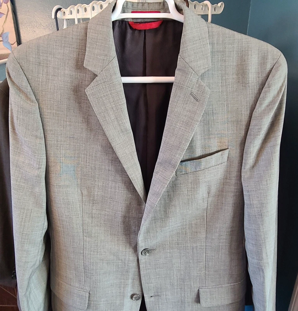 Alfani Light Gray Micro-Check 100% Wool Blazer 42L Sport Coat Suit Jacket Macy's