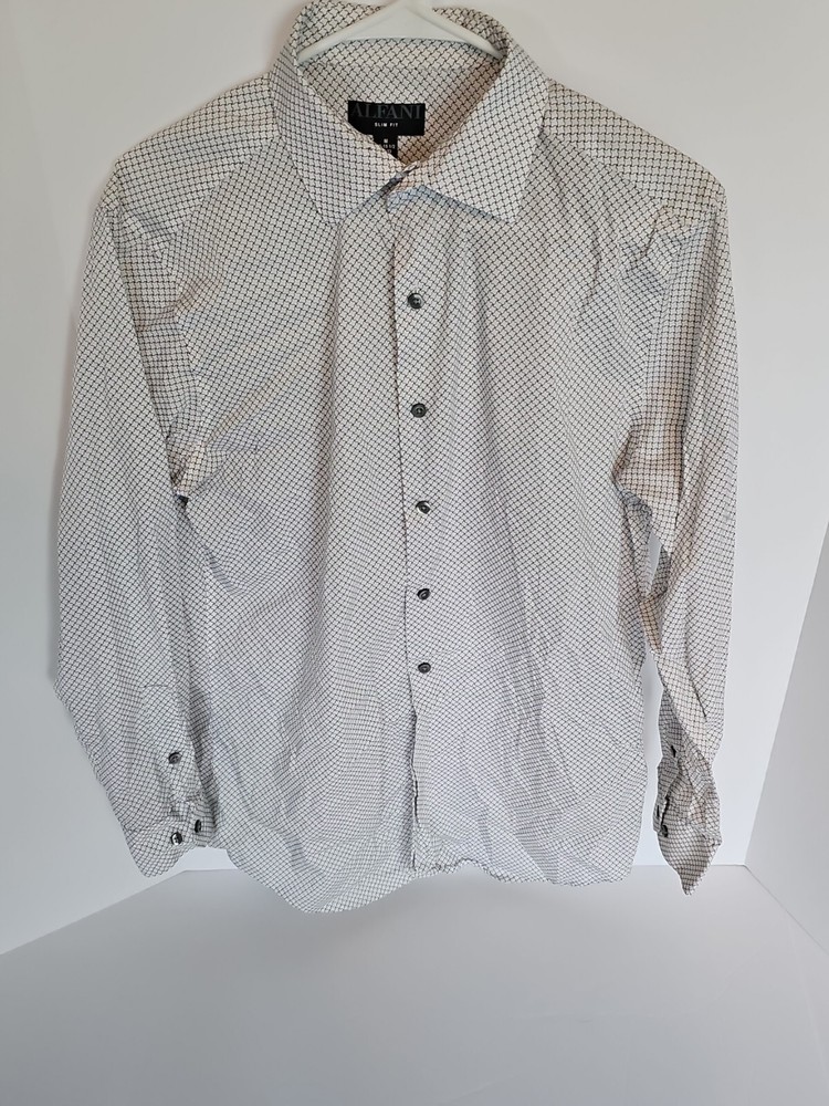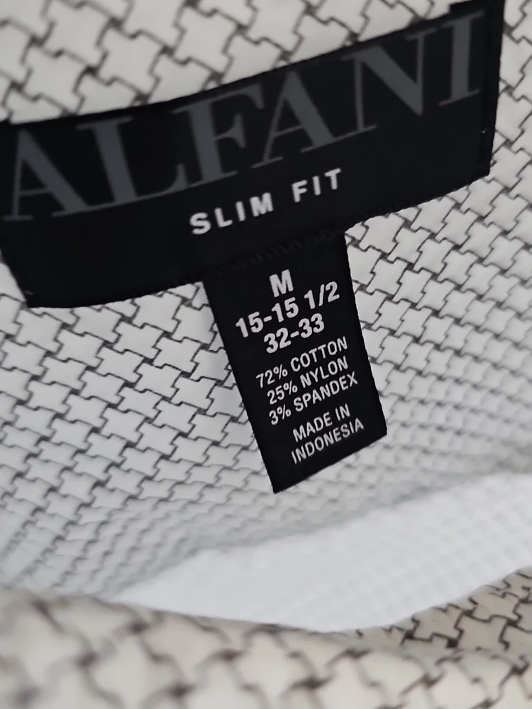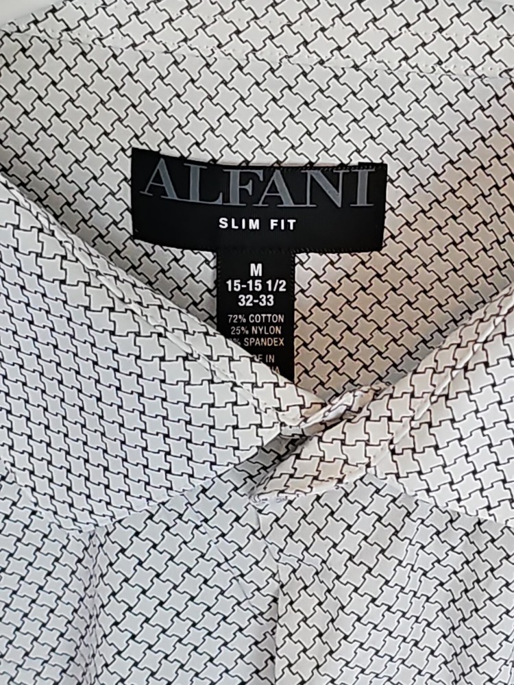 Alfani Slim Fit Button Down Long Sleeve White Black Mens Medium.