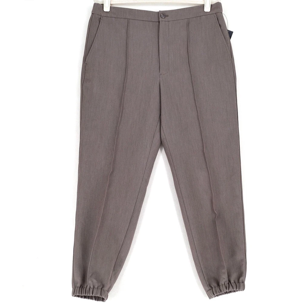 Alfani Men's Taupe Gray Casual Regular Fit Pleated Dressy Jogger Pants Size M New with tags Woven in crisp stretch fabric Regular fit Elastic waist back Mid rise Two side slant pockets Two back button-through welt pockets Pin tuck front pleats Zip fly with button closure Stretch performance Elasticized cuffs 75% polyester, 20% rayon, 5% spandex Machine wash Inseam 28.5" Waist flat lay 16"