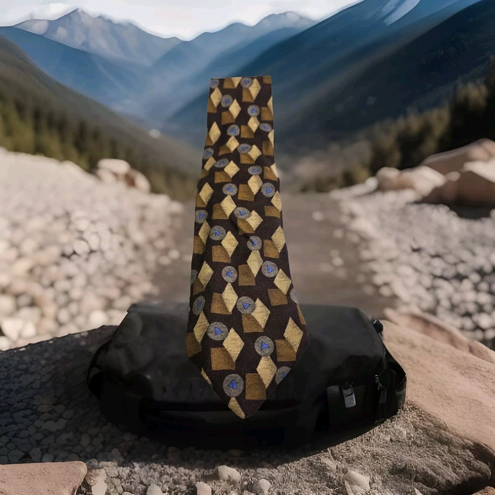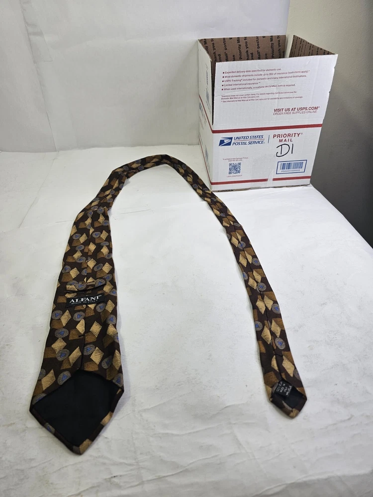 Features:AdjustableType:TieHandmade:NoPersonalize:NoDepartment:MenBrand:AlfaniMaterial:SilkStyle:DesignerAttachment Type:ElasticItem Length:Classic (57"-60")Size:One SizeCharacter:BlueItem Width:WideTheme:PreppyVintage:NoColor:MulticolorAccents:LogoPattern:GeometricFabric Type:WovenCountry/Region of Manufacture:United States