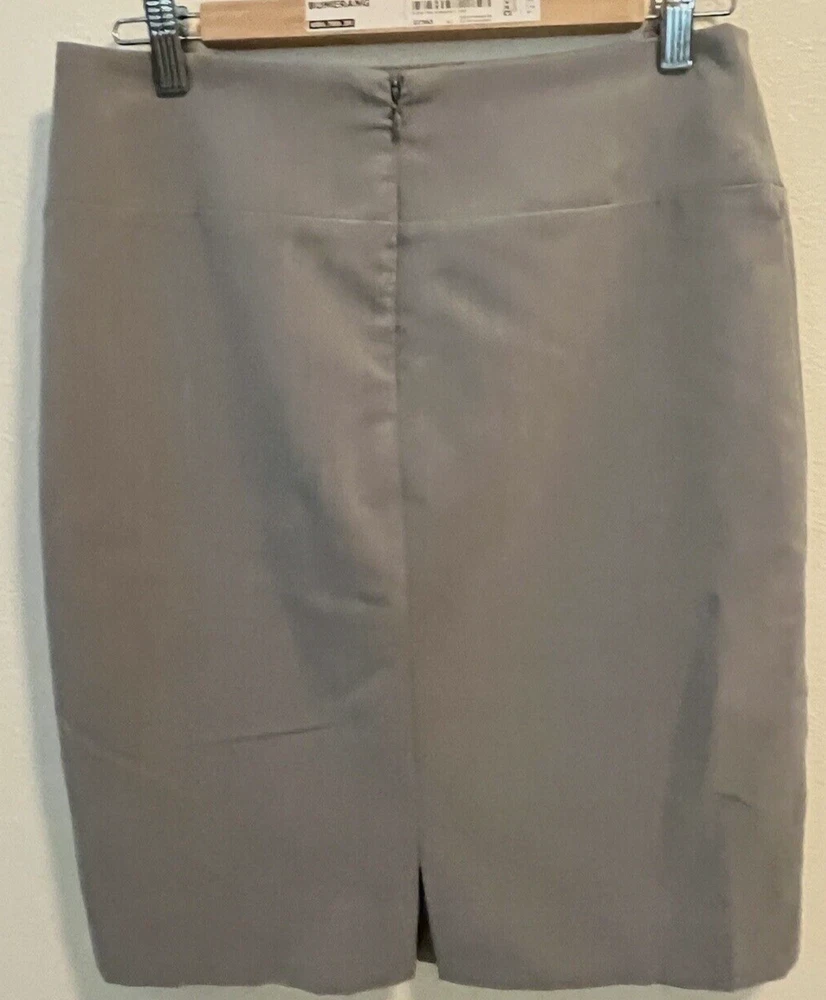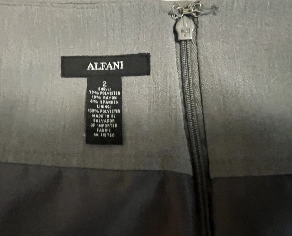 Alfani Women’s Gray Pencil Career Skirt Back zipper and slit / fully lined Size 2 Waist 32" length 21" Elevate your wardrobe with this stylish Alfani pencil skirt in a chic shade of gray. The skirt features a convenient back zipper and a knee-length cut that flatters any body type. With its solid pattern and straight, pencil style, this skirt is perfect for any occasion and can easily be dressed up or down. Crafted from a blend of polyester, spandex, and rayon, this skirt offers comfort and durability. Its sleek design is accentuated by the subtle zipper detail, adding a touch of modernity to the classic silhouette. Don't miss out on the opportunity to add this versatile piece to your wardrobe.