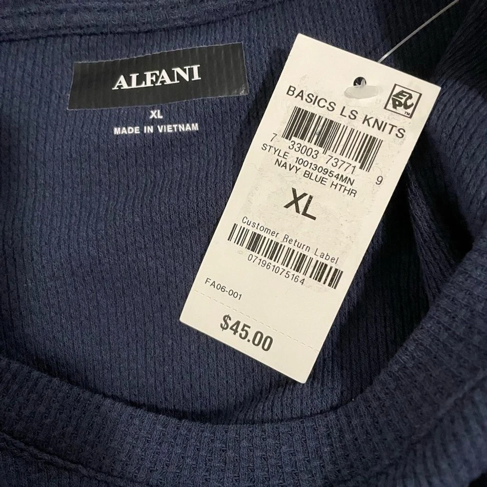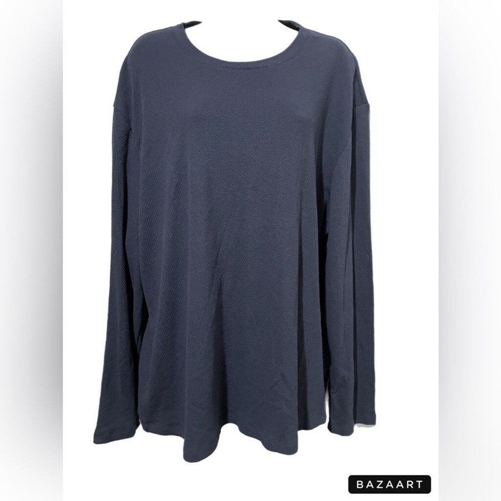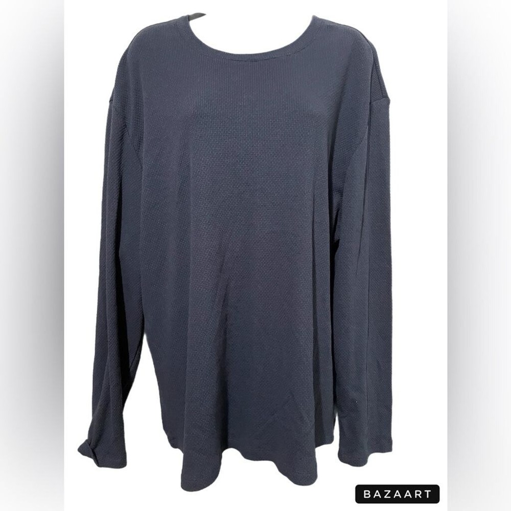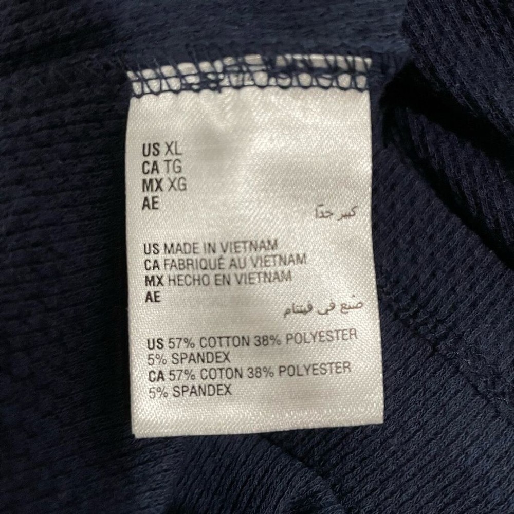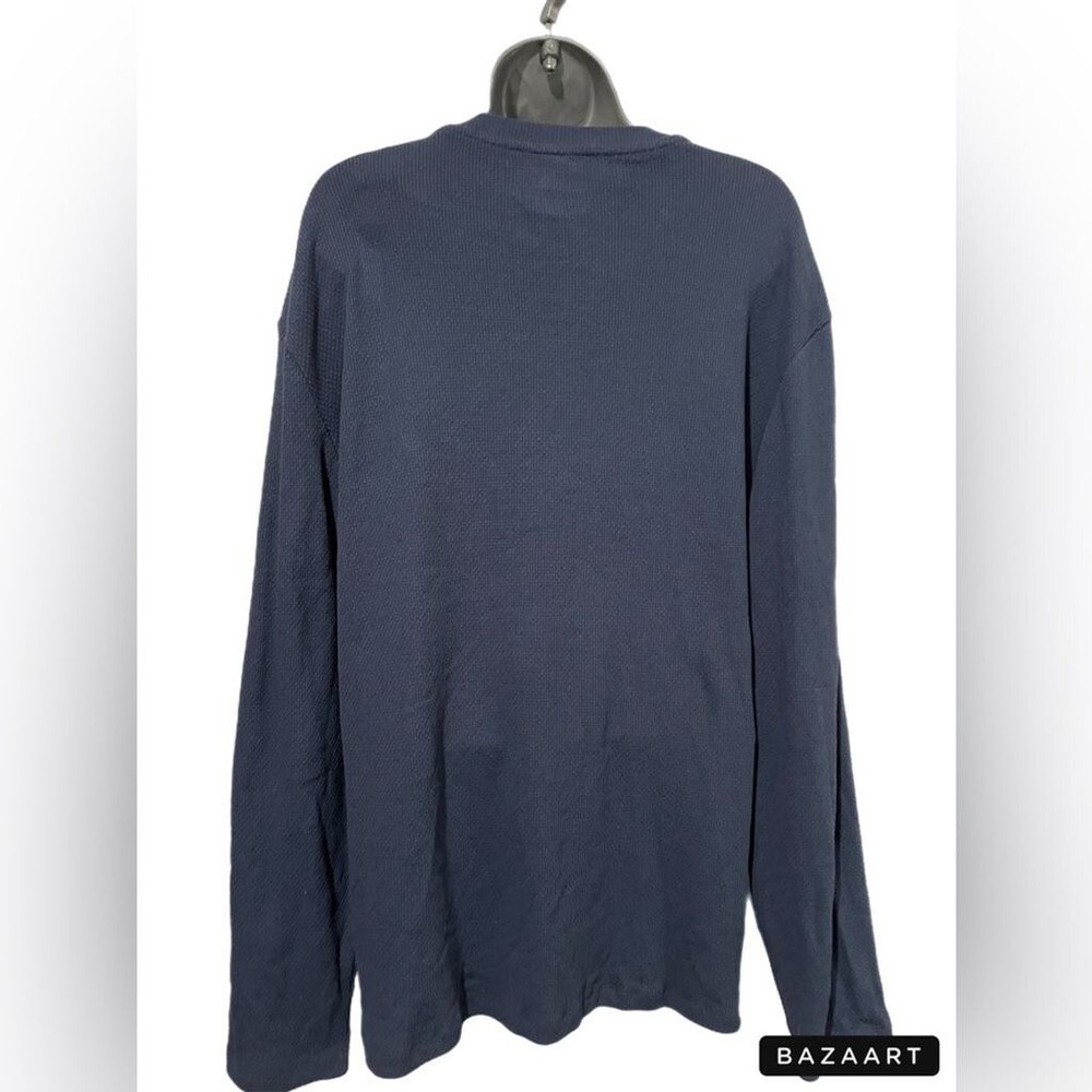 Navy blue knit long sleeve top. 57% cotton, 38% polyester, 5% spandex