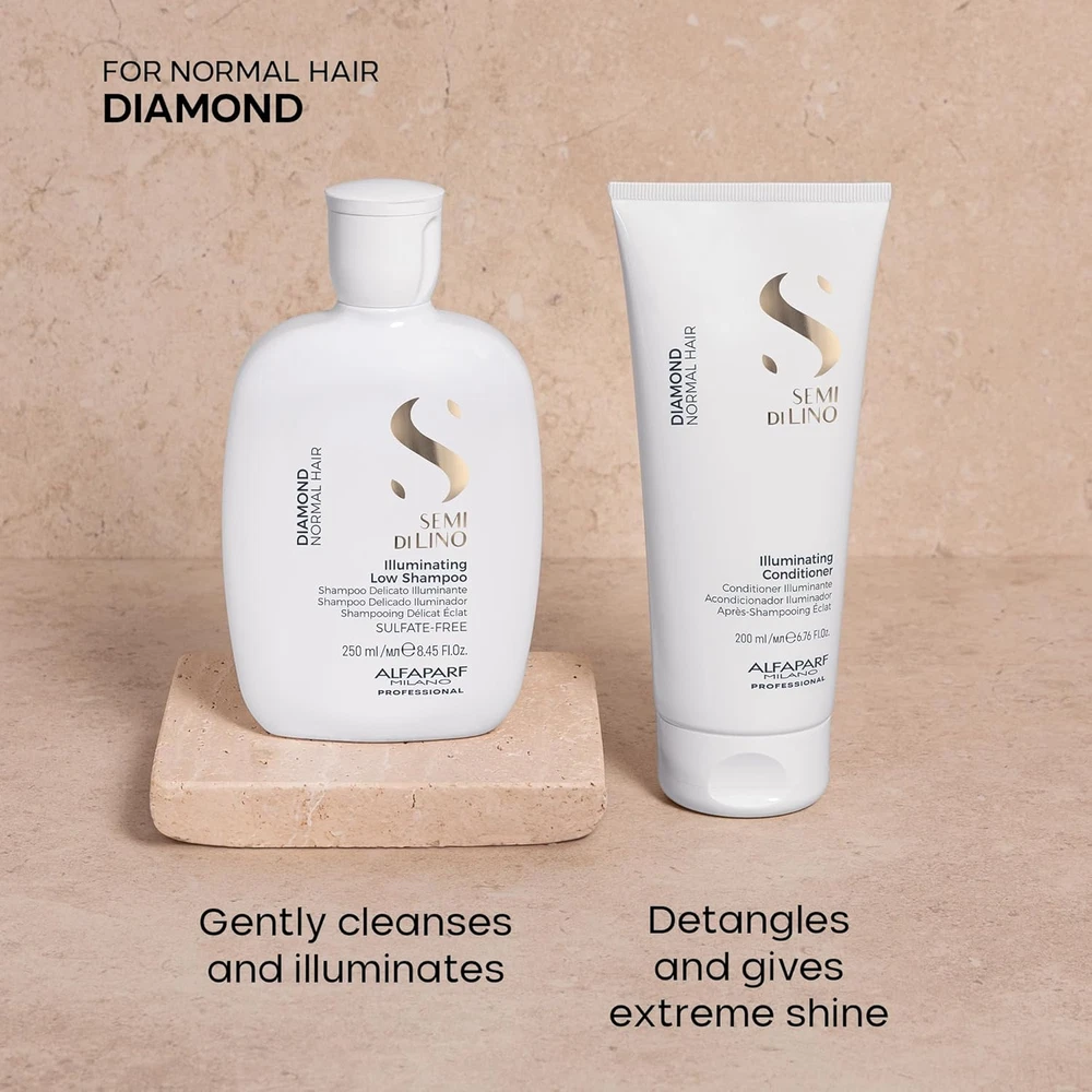 From the manufacturer Semi di Lino Diamond Shampoo + Conditioner Sulfate, paraben and paraffin free hair care products The Semi di Lino Diamond Set contains one 250ml sulfate free shampoo and one 200ml conditioner. The hair products revitalize, protect and illuminate. They are rich in vitamins and dramatically increase shine. The Diamond shampoo gently cleanses and gives extreme shine, making your hair soft and silky. The conditioner softens and helps your hair maintain its beauty and vitality over time. They contain a multi-vitamin complex that gives new energy to the hair fiber, has antioxidant, protective and softening properties, and helps to revitalize the hair fiber. No sulfates, paraffins, parabens, SLES or mineral oils Cruelty free, not tested on animals Safe on color-treated and processed hair Helps maintain color depth, tone and shine Adds brilliant shine and softness Formulated and produced in Italy The Semi di Lino Diamond products contain four unique complexes that protect and revitalize hair: Urban Defense Pro Protects the hair fiber from pollutants and heavy metals by carrying out a film-forming action. Shine Fix Complex A flax seed extract which has been reprocessed to give extraordinary long-lasting shine. Color Fix Complex A UV filter, antioxidant and high-performing formula for protection of cosmetic color. Multi-Vitamin Complex Vitamin E + F Complex gives new energy to the hair fiber, has antioxidant, protective and softening properties, and revitalizes the hair fiber. About Alfaparf Milano Semi di Lino - Keratin Therapy Lisse Design - Il Salone Milano Innovation, research, market proximity... but also love of beauty, dedication, excellence, the conviction that as Italians we can go further... That has led Alfaparf Milano to be the top Italian brand in the beauty industry world-wide. We create formulas, source raw materials and develop products in our laboratory. We do not skip any steps or take any shortcuts. For decades we have accumulated techniques and learned from experiences. Everything we create is dedicated to the hairdressers, the passionate and smart people that deserve the very best from us. We love to share our work, knowledge and inspiration with people that share the same dream and the same journey that we started many years ago. These are not just simple hair products. These are the results of research, knowledge, experience and feedback. Each product is a beautiful story constructed by excellence, enthusiasm, commitment and good vibrations.