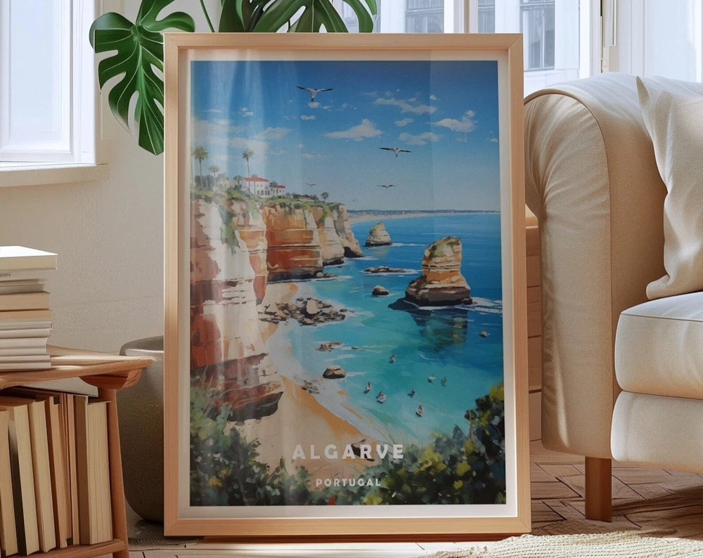 Algarve Travel Poster Algarve Print Algarve Wall Art Portugal Print Portugal Poster Portugal Wall Art Portugal Gift Material: Premium luster photo paper Print type: Inkjet printing One side printed + The finish provides the highest possible resolution and color saturation + Lasts up to 200 years in color and 400 years in black-and-white + Printed on high-quality resin-coated photo base paper medium + Posters can be hung with double-sided tape, tacks, or framed + Hand washing with a gentle cry cloth is recommended for extended durability I will hand select the best choice of paper for your chosen design to ensure top quality results for a beautiful, bright and luxurious print. All prints are sealed in cellophane slips for protection during transportation, and are shipped in a protective cardboard envelope.