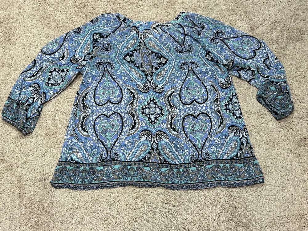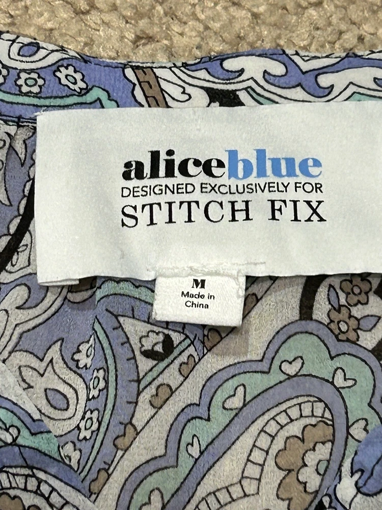 Clothing Description: Item is a pre-owned Alice Blue women's shirt in good condition. Items are carefully inspected and sealed after photos. We cannot check additional measurements or details for you. Please note, item measurements are approximate and in the photos. Previous washings may change the sizing. Please compare our measurement photos to your favorite garments to ensure fit. Colors remain vivid, we store our items in a smoke free environment If the item is pre-owned, it's cleaned per eBay standards. We do not use any freshener or scents. Shipping and Return Details We ship daily so that you receive your item quickly. We have a 30 day return policy. Please let me know if you are interested in combine shipping for multiple purchases. Please feel free to ask any questions you may and we will try our best to answer as quickly as possible.