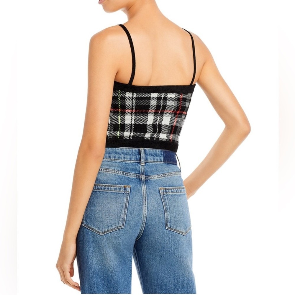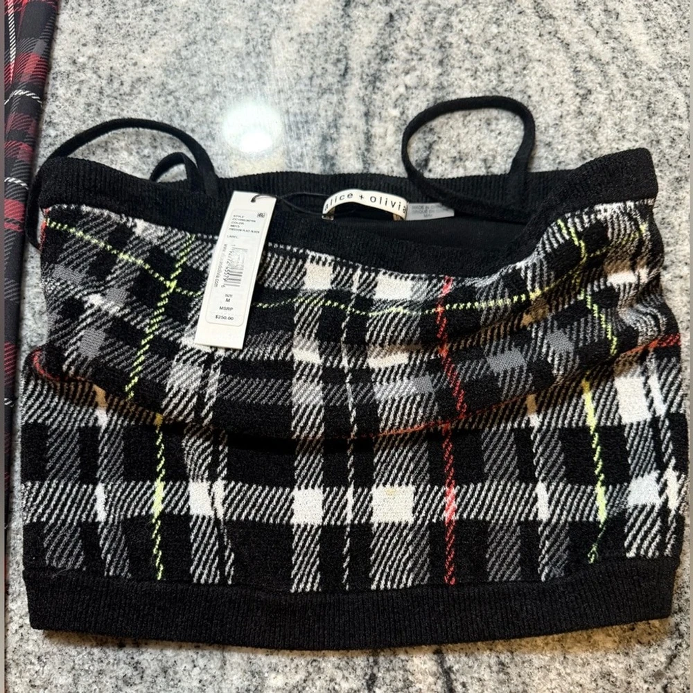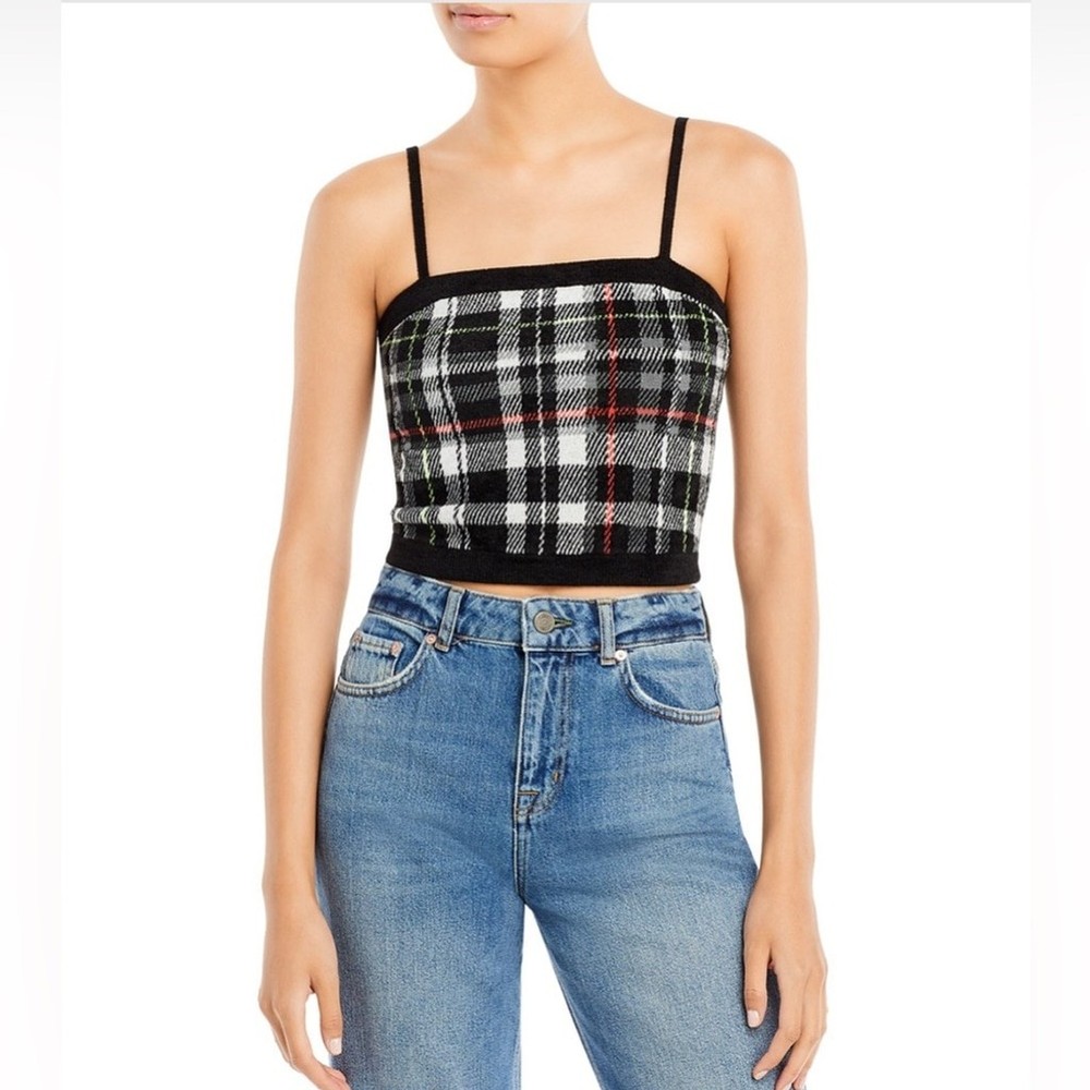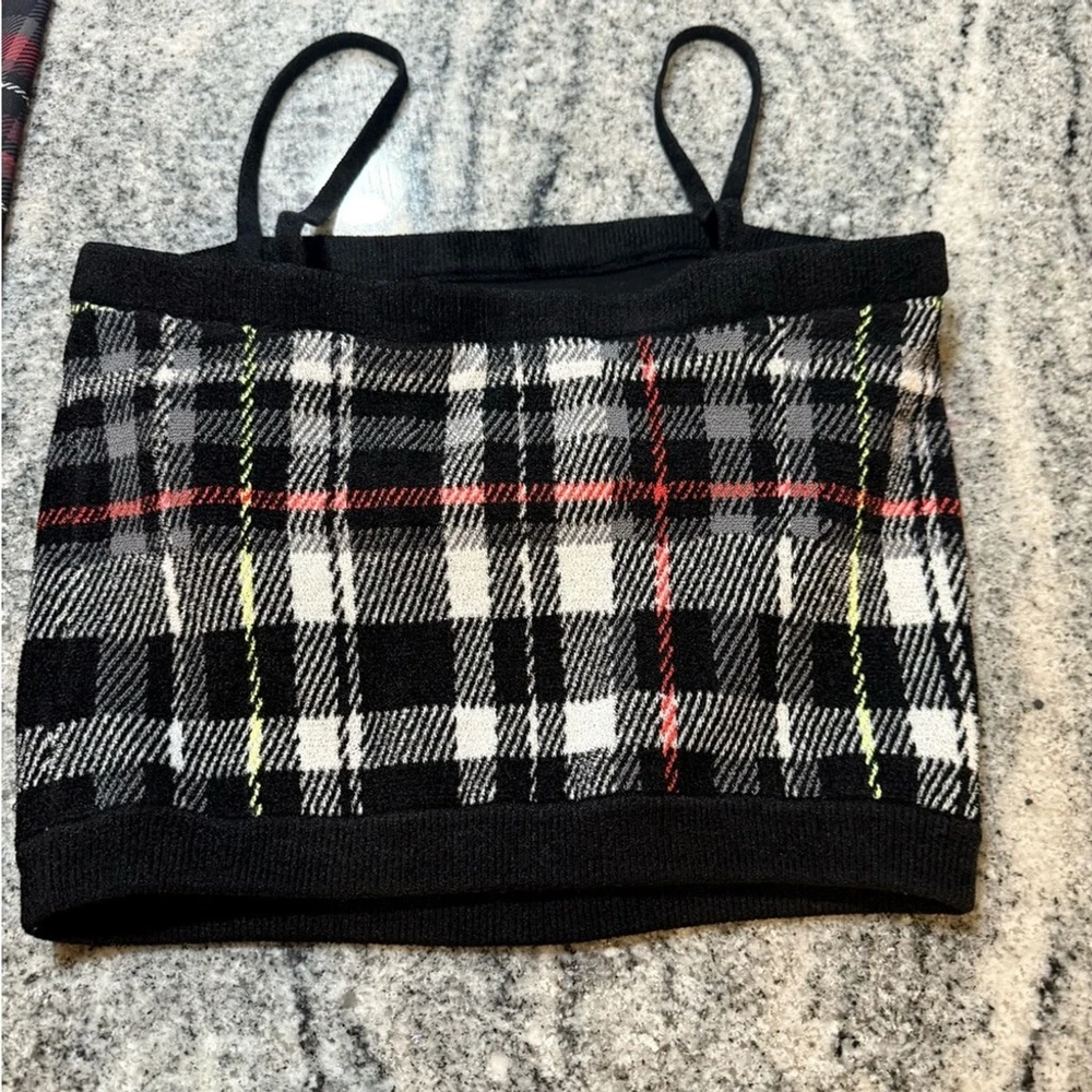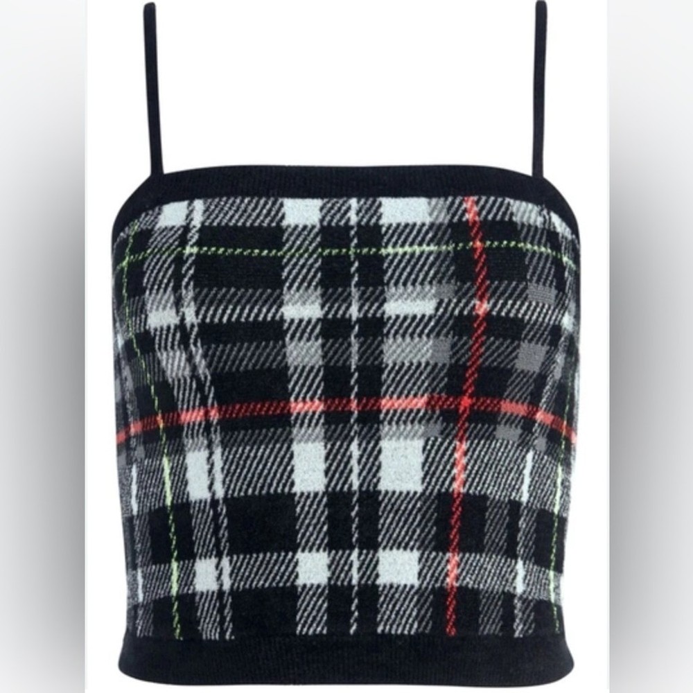 Stylish plaid crop top with thin straps. Perfect for casual outings.
