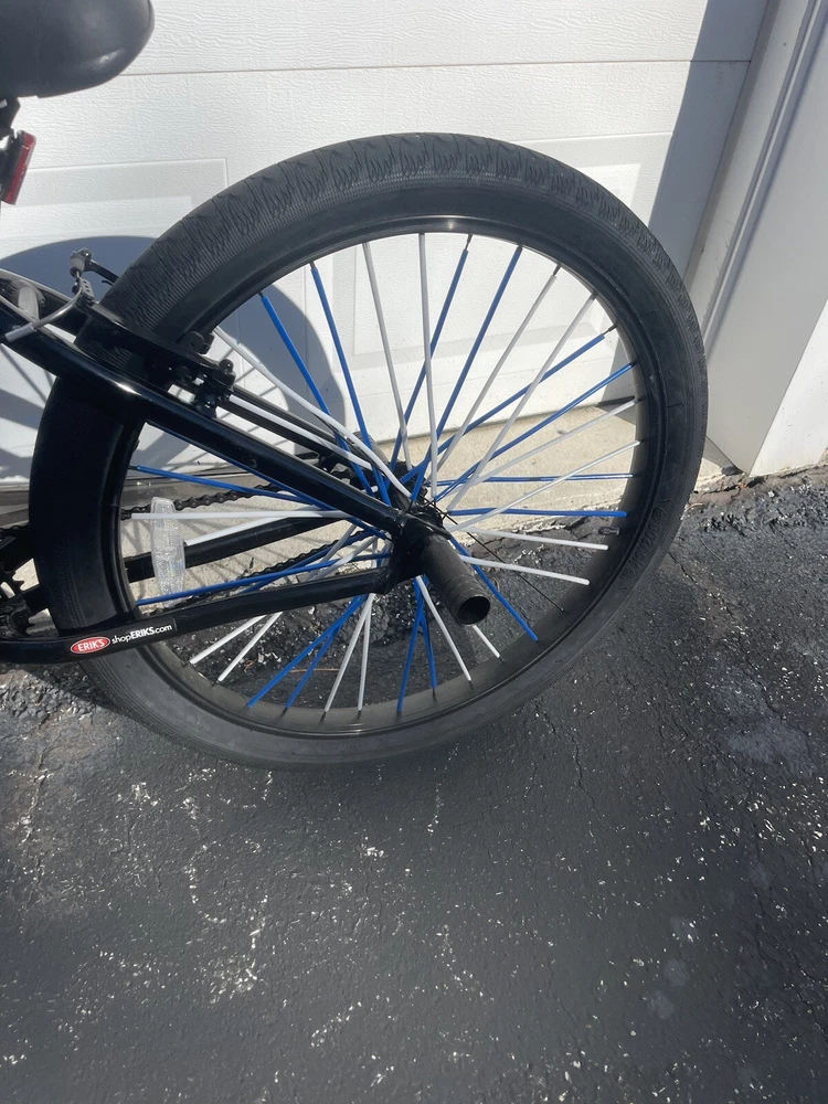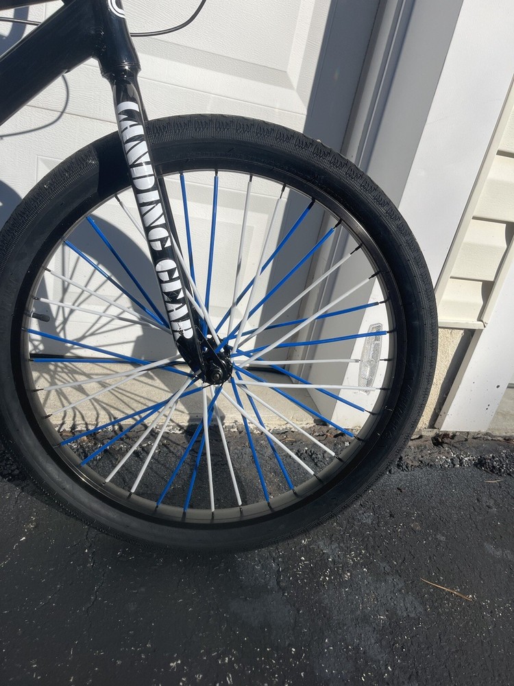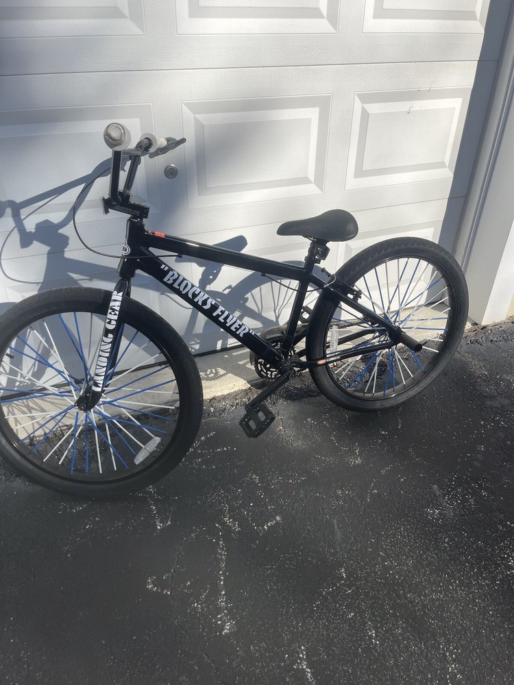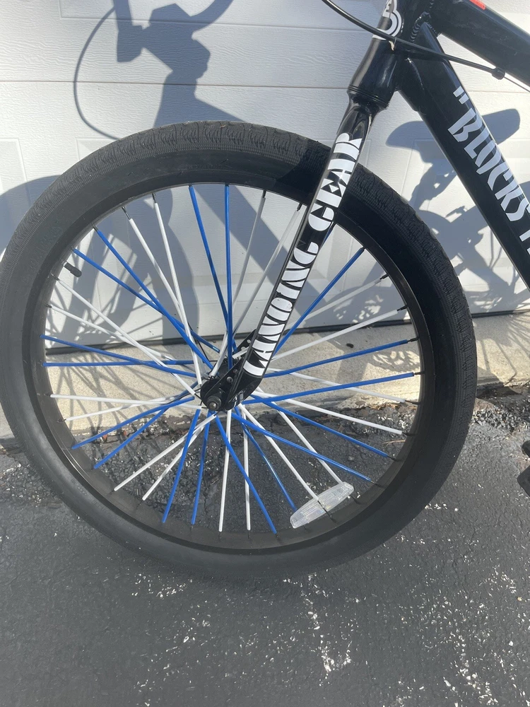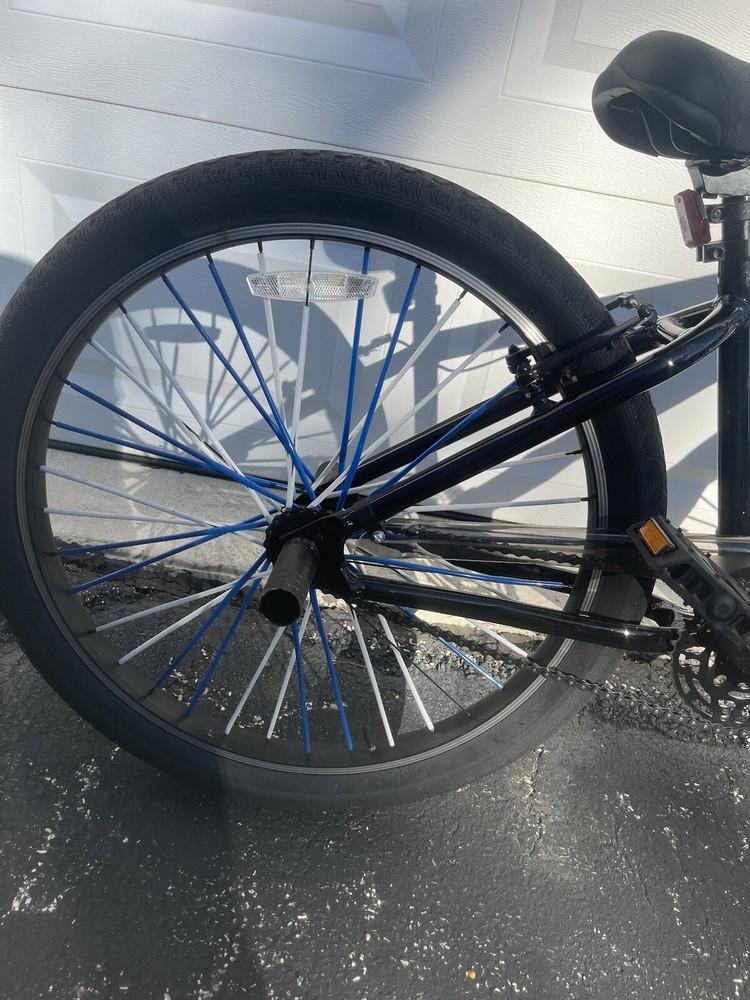 All Black SE 24” Inch White And Blue Spokes White And Black Handlebars