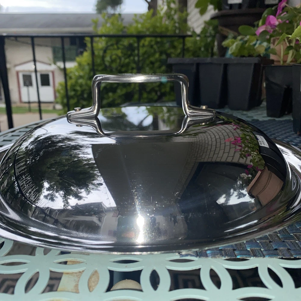 All Clad 10” Domed Lid Stainless Steel . Condition is Used. Shipped with USPS Ground Advantage.