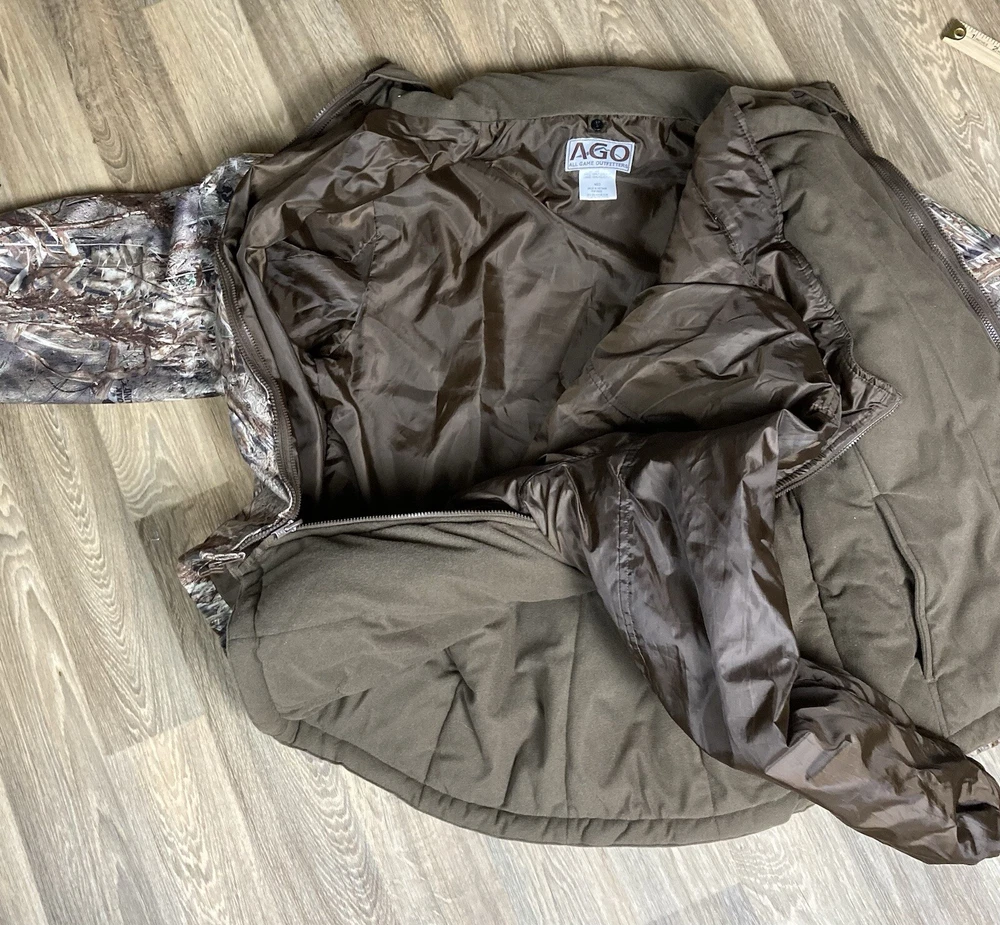 All Game Outfitters AGO Hooded Jacket Camouflage Mossy Oak Duck Blind SZ M Preowned Men’s Size Medium Good Condition Please Check Photos
