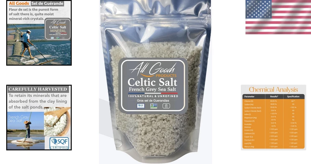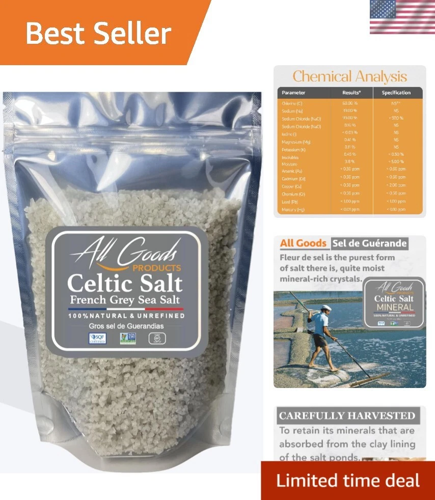 All Goods 5Oz Coarse, Hand Harvested Celtic Salt Organic 82 Minerals Coarse, Fr ‹ › ‹ › ‹ › ‹ › ‹ › ‹ › ‹ › ‹ › ‹ › ‹ › ‹ › All Goods 5Oz Coarse Celtic Salt Hand Harvested, Organic, 82 Minerals Coarse Key Features: ✔️ All Natural: Each grain of our is carefully harvested by hand from clay-lined salt ponds in the renowned Guérande region of France. Enjoy the wholesome purity of Sel Gris, a crystalline Celtic salt that retains its natural moisture. ✔️ Premium Grade: Discover the richness of French grey sea salt, famous for its 82+ beneficial minerals and unique light grey hue. Sel Gris is a versatile fixture in any gourmet salt collection. ✔️ Always Fresh: Packaged in a premium resealable pouch, our guarantees long-lasting freshness and exquisite taste. Gluten-free, non-GMO verified, kosher certified, and compatible with vegan, paleo & keto diets. ✔️ Culinary Versatility: Our coarse is designed to fit all grinders, allowing you to elevate your culinary creations and impress guests with distinctive flavors. Perfect for seasoning all dishes. Why Choose All Goods Celtic Salt? Indulge in the authentic taste of France with the All Goods 5Oz Coarse Celtic Salt. This hand-harvested gem not only enhances your dishes but also brings a wealth of minerals to your table—a gift from nature’s bounty. Renowned by nutrition experts and trusted by professional chefs, this organic salt meets the highest quality standards. Your satisfaction is our priority! If you're not completely satisfied, we offer a money back guarantee—no questions asked. Elevate your culinary experience today! Shipping Free & Fast Shipping - We offer free shipping to most of the USA with a normal delivery time of 3-7 days. However, due to the current situation, additional delivery time (up to 3 weeks) may be required for some items. Alternative Carriers - We may use alternative carriers (e.g. USPS, FedEx, UPS, etc.) to ensure your package arrives safely and on time. Due to the use of multiple carriers, we are unable to provide a tracking number automatically. Handling Time - Orders are processed and shipped within 1-2 business days of receiving cleared payment. Shipping Restrictions - Shipping to Alaska, Hawaii, Puerto Rico, Guam, and other US territories may incur shipping charges or delivery restrictions. Please contact us before ordering, or your order can be refunded/cancelled. State Restrictions - There may be restrictions based on your state of purchase. For example, certain items may not be shipped to California due to state regulations. Contact for Tracking Updates - If you require tracking updates or have any concerns about the delivery of your order, please feel free to contact us, and we will be happy to assist you. Return 30-Day Hassle-Free Returns - We want you to be completely satisfied with your purchase. If you are not, you can return the item within 30 days of receiving it for a full refund or exchange. Easy Return Process - To start a return, simply contact us and we will provide you with a prepaid return shipping label and detailed instructions. Restocking Fee - There are no restocking fees for returns. However, the buyer is responsible for return shipping costs if the return is not due to a seller's error. Refund Processing Time - Refunds will be processed within 5 business days of receiving the returned item in its original condition. Payment We accept all major credit cards, PayPal, and Apple Pay for your convenience. Your payment information is secure and encrypted to ensure a safe and seamless transaction. Please complete your payment within 3 days of purchase to avoid any delays in shipping. Feedback Your feedback is extremely important to us. We strive to provide the best products and customer service possible. If you are satisfied with your purchase, please take a moment to leave us a positive review. If you have any concerns or issues with your order, please contact us before leaving negative feedback. We are committed to resolving any problems and ensuring your satisfaction. Contact Us If you have any questions or concerns, please feel free to reach out to our customer support team. You can contact us through the eBay messaging system. We are available Monday to Friday, 9:00 am to 5:00 pm EST, and we will do our best to respond to your inquiry within 24 hours. Buy it now and enjoy a pleasant shopping experience! UPC: 313026764727 Expiration Date: Not Set Calories per 100 g/mL: Not Set Course: Seasoning Number in Pack: 1 Product Name: Not Set Style: Celtic Salt Unit Quantity: 5 Specialty: Organic Package Dimensions: 5.67 x 4.49 x 1.5 inches Size: 5 ounces Allergen Information: Not Set UPC: does not apply Flavor: Salty Food Specifications: Gluten Free,Kosher,Organic,Vegan,Non-GMO,Paleo,Keto MPN: does not apply Labels & Certifications: Not Set Brand: Unbranded Product: Does not apply Type: Celtic Salt Form: Coarse Allergens: Not Set Calories per Serving: Not Set Number of Servings: Not Set Serving Size: Not Set Regional Cuisine/Region: Not Set Country/Region of Manufacture: Unknown Item Weight: 5 Ounces Food Aisle: Pantry Unit Type: Not Set