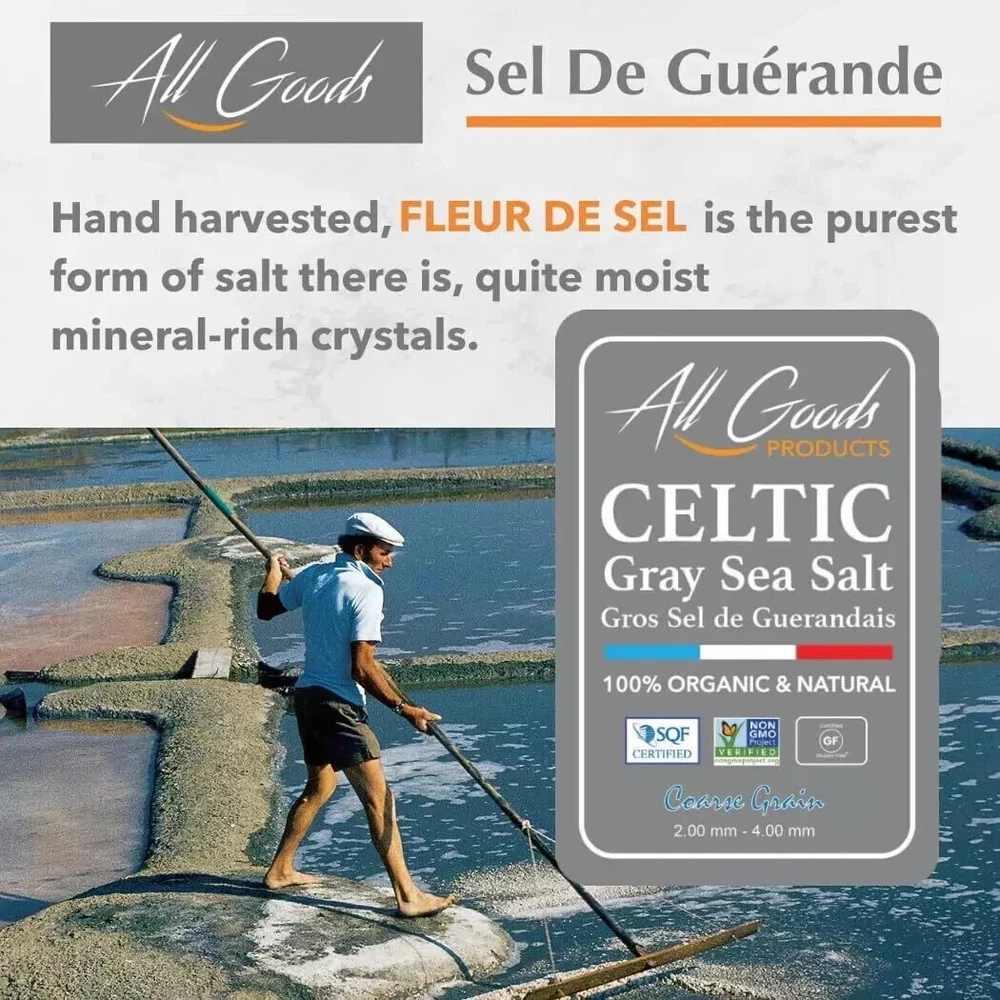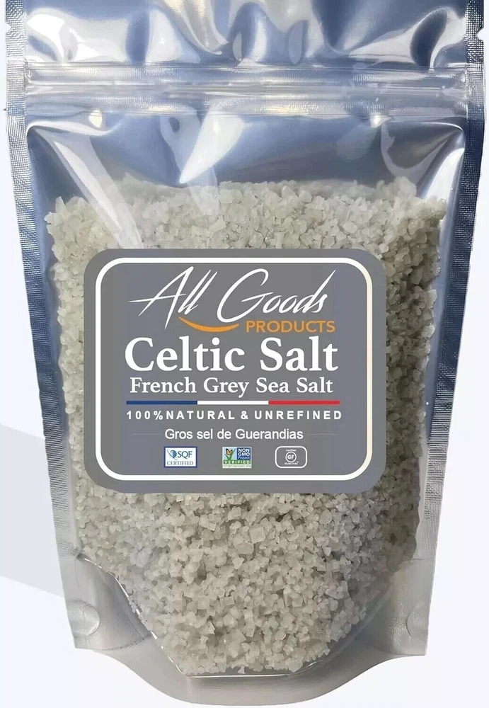 Experience the delicious taste of All Goods 5Oz Coarse, Hand Harvested Celtic Salt Organic 82 Minerals Coarse. This French Grey Sea Salt is perfect for those who love to enjoy the flavor of sea salt. The 5oz pack is great for use in cooking, and the salt is gluten-free, making it a great option for those with allergies. The salt is harvested by hand and comes from an unknown country/region of manufacture. It has a rich flavor and is perfect for use in herbs, spices, and seasonings. The package dimensions are 5.67 x 4.49 x 1.5 inches, and the item weight is 5 ounces. This branded salt is a must-have for anyone who loves the taste of sea salt and wants to add it to their collection. ✔️💯ALL NATURAL: All Goods mineral celtic salt is carefully harvested by hand from clay-lined salt ponds in the Guérande region of France, Sel Gris is a crystalline celtic salt that retains much of its natural moisture. Pure, organic celtic salt coarse. ✔️PREMIUM GRADE: All Goods French grey sea salt is known for its 82+ beneficial minerals, trace elements content and unique light grey color. Sel Gris is world renowned as an adaptable, celtic salt that is an essential component in any salt selection. ✔️ALWAYS FRESH: With a premium quality resealable packaging , all goods mineral celtic salt organic, maintain their freshness for a longer exquisite taste period. Gluten free, non-GMO verified & kosher certified, vegan, paleo & keto friendly. ✔️ VERSATILITY IN THE KITCHEN: With All Goods mineral celtic salt organic coarse, fits all grinders and unleash your culinary creativity and impress all your guests with unique and delicious flavor. Real french grey sea salt, for seasoning all your dishes. 😍 ALL GOODS: It's a 💯 original & trust USA 🇱🇷 brand, approved for all required quality standards, recommended by nutrition experts & professional chefs. Not satisfied? money back guaranteed no questions ask. Product Description