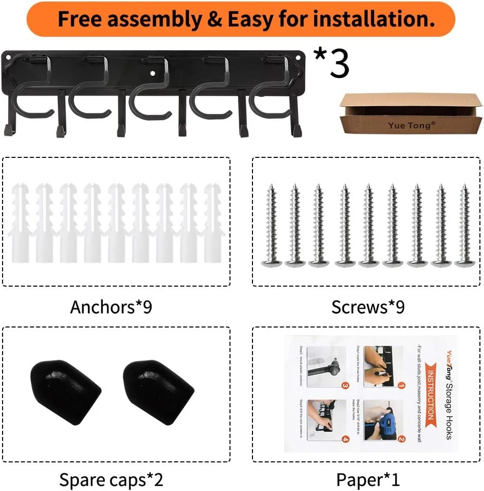 Store New Arrivals Add to Favorite View Feedback Contact All Metal Garden Tool Organizer,Adjustable Garage Wall Organizers and Storage,Heavy Duty Wall Mount Holder with Hooks for Broom,Rake,Mop,Shovel.(3 Pack) Description Style 51" organizer Pattern 51" organizer Country of Origin China Batteries Included? No Room Type Garage Finish Iron,Metal Assembly Required No Product Dimensions 5"D x 51"W x 0.65"H Material Rubber,Metal,Iron Finish Type Iron,Metal Item Package Quantity 1 Shelf Weight Capacity 15 Pounds Batteries Required? No Item Weight 4.29 pounds Number of Shelves 3 Special Features heavy_duty, adjustable_easy_install Special Feature heavy_duty, adjustable_easy_install Mounting Type Wall Mount Shelf Type Wall Mount Color Black Recommended Uses For Product Tools Included Components Cover Size 51" organizer 【All-Metal】The size of each metal backboard is 17*4.8 inch,with 5 pieces orange rubber maid hooks and 6 pieces black fixed hooks on each pack,It's a good choice for garage organization.Garden shears.This is 3 pack,totally 51" long. 【Free Assemble】YueTong wall mounted broom holder you get will be a whole body with hooks assembled,so you can install it directly with the recommended drill size according to the installation paper. 【Big Storage】The adjustable hooks covered with thick rubber,help to avoid damaging tool surface,and it designed to hang the garden tool with handle.The fixed hooks designed to hold small tools like garden shears.It will save a big space for your shed, basement, workshop, closet. 【Anti-rust,Anti-aging】All the material is iron,the surface treatment is anti-corrosion.so it can be using both indoor and outdoor yard.Never worry about it aged with sun-scorched and rain-drenched. 【Worth What You Pay For】With metal plate board and metal hooks,it has a heavy weight and heavy duty of course,you won’t disappointed when you receive the package as this item almost no return. Product Description 16 inch holes distance to suit for wall studs 16" holes distance to get heavier duty when install it to wall studs. Thicker plate to avoid deform under big capacity. All metal There is only 2 mail holes and 1 auxiliary hole needed,very easy to install. Great space saver picture provided by our customer Ver1.0-rubber cap From lauch to 2021.10 impove suggestion from our customer Ver2.0-press for use No need to assemble totally. Adjustable rubber maid hooks The rubber will avoid the scratch for your tools. Rust-proof & Heavy duty The surface is dealt with rust-proof process.don't worry the age will affect it. No assembly What you get is an one-body plate board with adjustable hooks and fixed hooks to reach your garage storage needs. ABOUT US We offer the best prices around on high quality products. Our E-store includes media such as books, movies, music and games while offering electronics, toys, sporting apparel, clothing, tools, general home, garden items and more. SHIPPING We are always working hard to ensure your package arrives as soon as possible. Please understand that some factors like weather, high postal traffic, and the performance of shipping companies are outside of our control. We offer free shipping to the lower 48 states and ship within 2 business days of payment, usually sooner. We do not accept P.O. Boxes. Please provide a physical address. For shipping outside of the continental USA, we only use eBay's Global Shipping Program.The item is shipped to KY and then sent to the rest of the world. International customers are responsible for all duties and taxes. Continue to check out in order to calculate costs for shipping the item to your country. Messages regarding eBay's Global Shipping Program MUST be directed at eBay EXCLUSIVELY. RETURNS We offer a 30-Day Return Policy on items which you are not completely satisfied with. You have the option for a full-refund or an exchange of the item. No returns are available on items shipped outside of the USA. PAYMENT We accept PayPal. CONTACT US This page content is yet to come Please ad us to your favorite seller and visit again later Thank You CUSTOMER SATISFACTION We try our very best to make sure every customer is completely satisfied. If there's a problem, message us! We're happy to help. WE ACCEPT Copyright © 2021 AutoDS. | All Rights Reserved